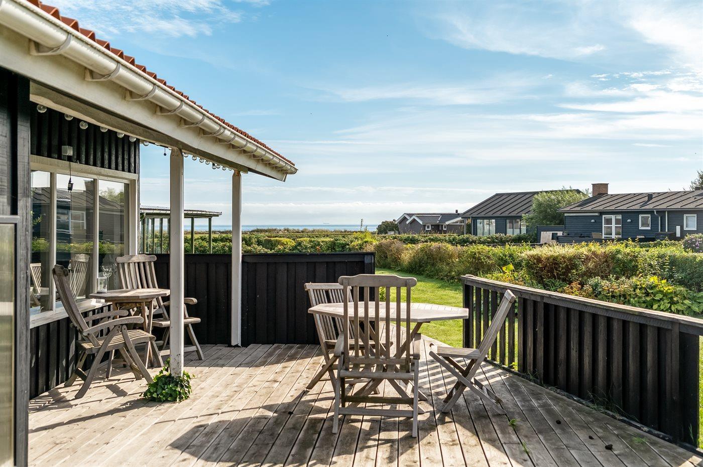Ferieboligen er beliggende på en 730 m² stor havegrund. Der er 90 m til havet. Nærmeste forretning er beliggende i en afstand af 2100 m. Til ferieboligen hører åbent terrasseareal. Desuden er der overdækket terrasse. Grill til rådighed. Der er installeret stik til opladning af elbil. Type 2 stik. Med 11 kW ladeeffekt. Parkering ved ferieboligen.