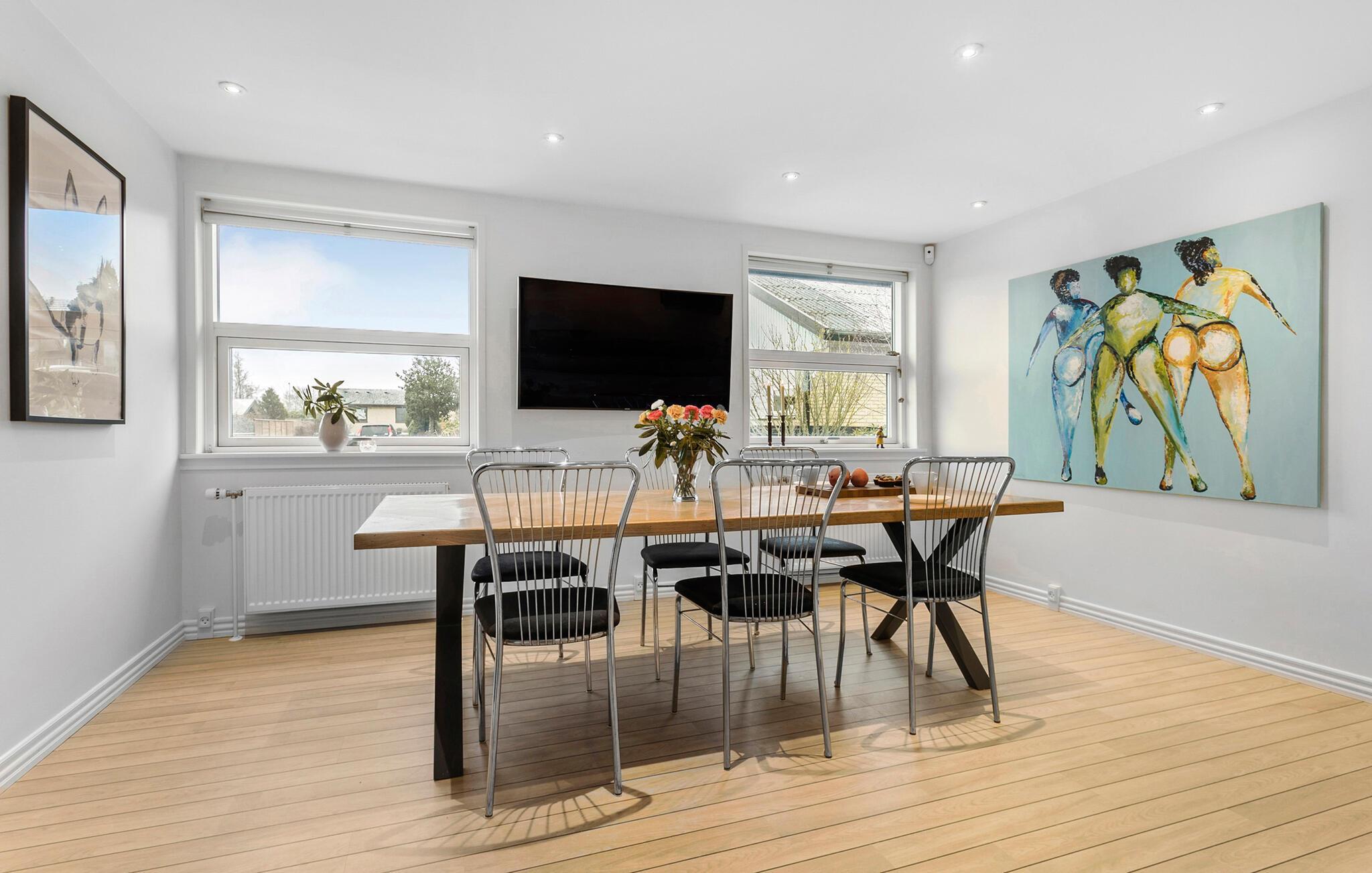 Det er denne perle af en bolig, der byder hele familien indenfor til et vidunderligt ophold ganske tæt på Kattegat. Huset byder på mange kvadratmeter, og indretningen er elegant og gennemtænkt, ikke mindst i det store opholdsrum, der kombinerer køkken, spiseområde og stuen. Køkkenet er veludstyret, så tag jer blot god tid med at kræse om livretterne, mens andre fyrer op i brændeovnen og slænger sig med en god bog. Til de mindste er der et indendørs legerum med masser af legetøj, de kan boltre sig med.
