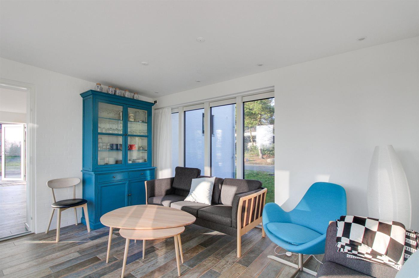 Ferielejligheden, som ligger i naturlig forlængelse af ejers feriebolig, er flot og velindrettet. Materiale- og møbelvalg samt indretning er af høj kvalitet. Der er gulvvarme i hele lejligheden, opvarmningen er energivenlig og der er valgt allergivenlige materialer som isolering.