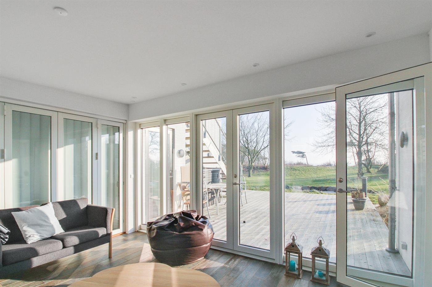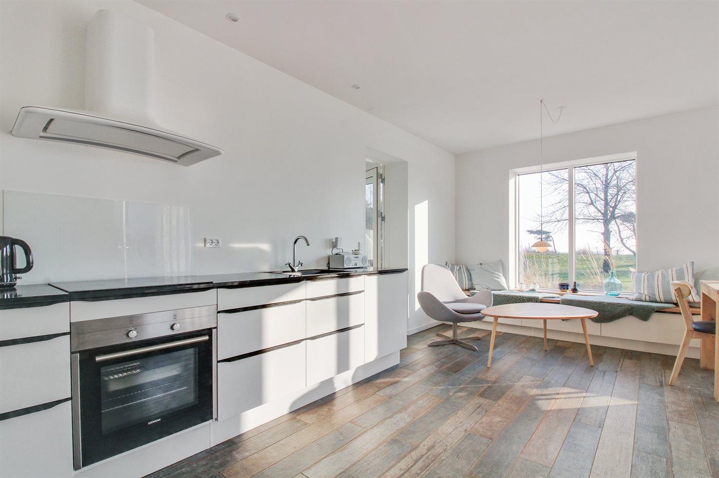 Arkitekttegnet ferielejlighed med havudsigt og tæt på børnevenlig sandstrand i Aakirkeby.
