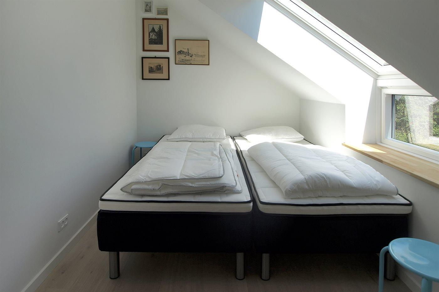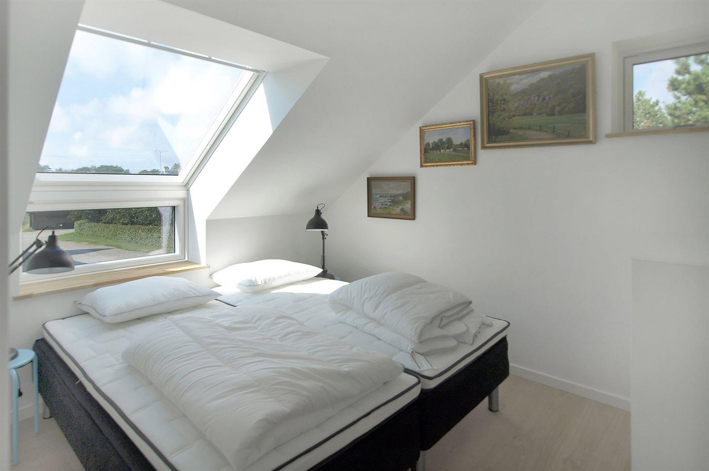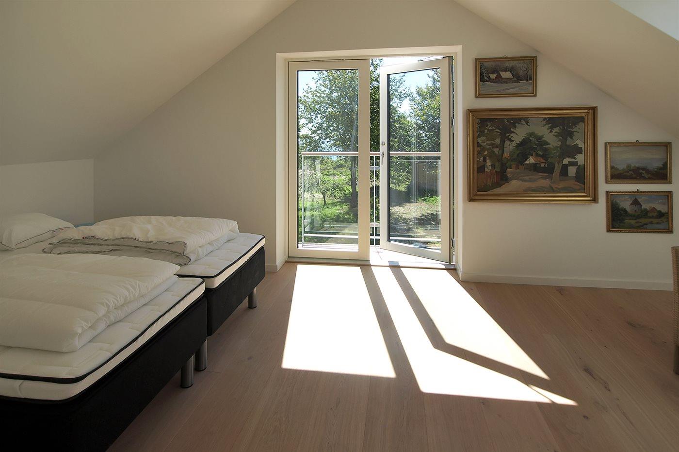 Der er 4 dobbeltværelser, hvoraf det ene er et master bedroom med egen altan og direkte havudsigt. Alle sengene kan fungere som dobbeltsenge eller stilles som enkeltsenge. Flot badeværelse med gulvvarme og bruseniche.