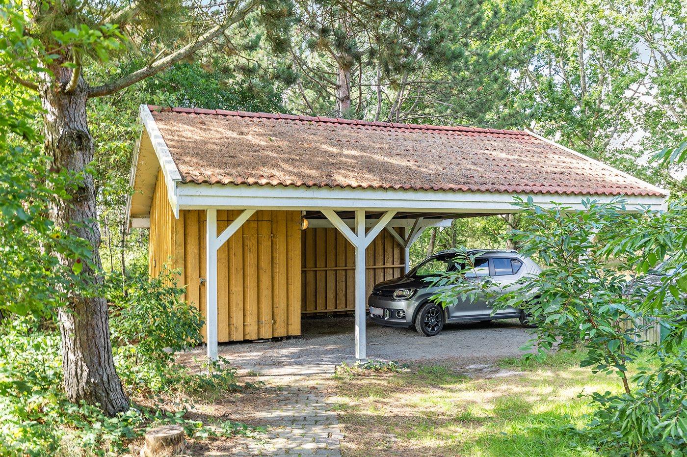 Ferieboligen er beliggende på en 1300 m² stor naturgrund. Der er 500 m til havet. Nærmeste forretning er beliggende i en afstand af 3000 m. Der er en golfbane i en afstand af 6000 m. Til ferieboligen hører 50 m² terrasseareal. Gynge. Grill til rådighed. Der er carport til rådighed. Parkering ved ferieboligen.