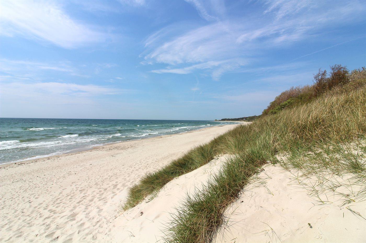 Moderne sommerhus fra 2021 med sauna og terrasse nær sandstrand i naturskønt område.