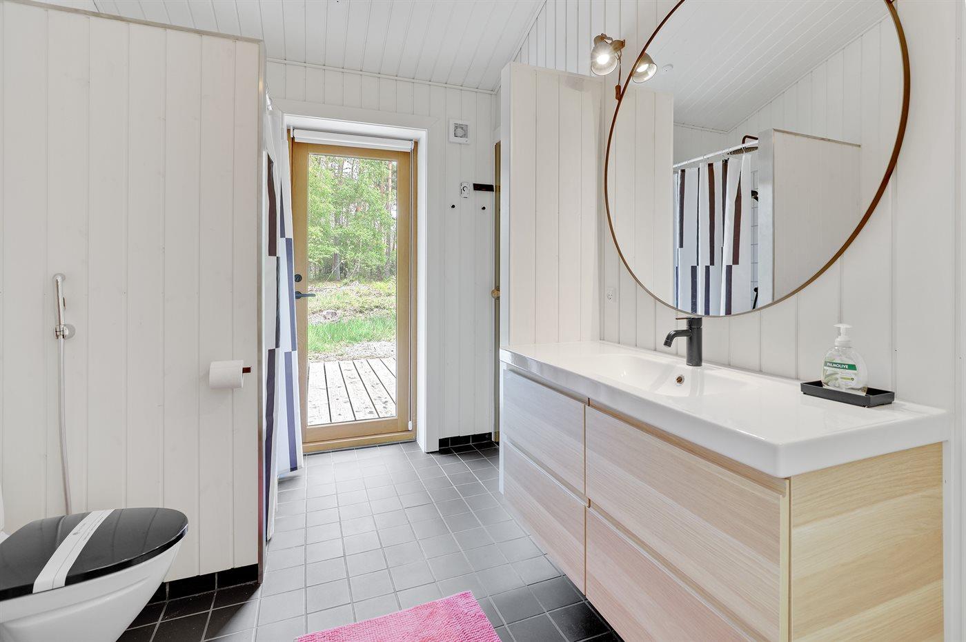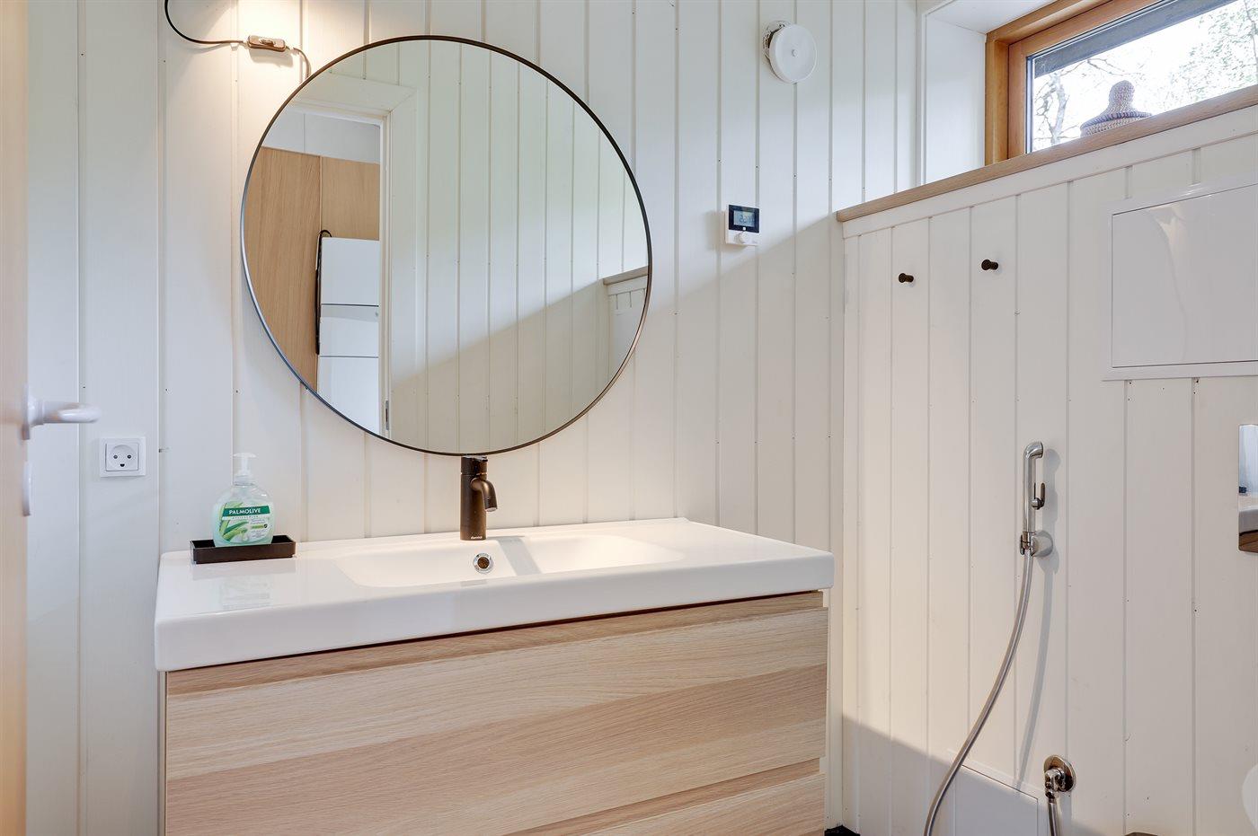 Der er 1 badeværelse med bruseniche og 2 toiletter, heraf 1 gæstetoilet. Der er gulvvarme på 1 badeværelse. Der er gulvvarme på gæstetoilettet. I saunaen er der mulighed for afslapning.