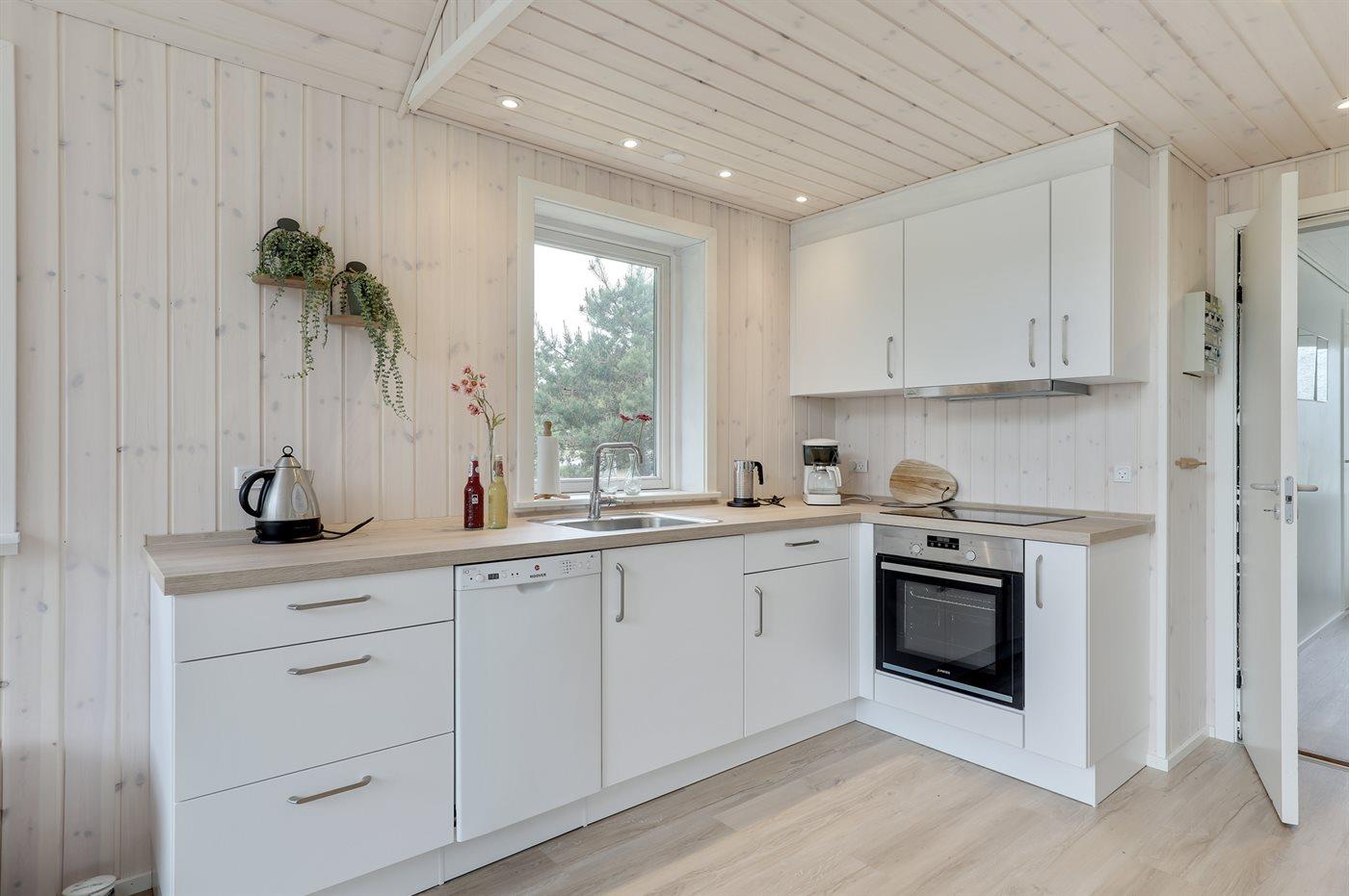 Køkkenet er udstyret med 1 køleskab. Der er 4 induktionskogeplader, varmluftovn, mikrobølgeovn samt opvaskemaskine.