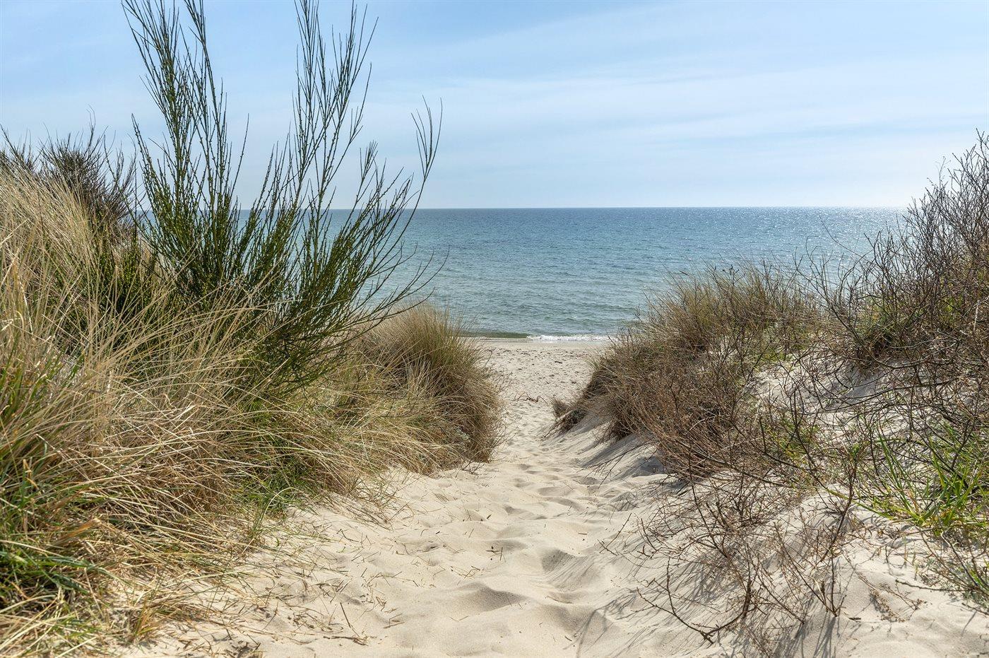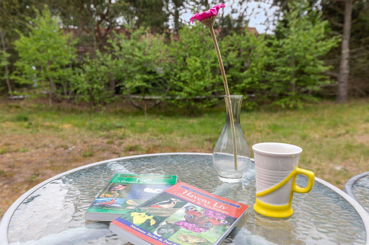 Ferieboligen er beliggende på en 800 m² stor naturgrund. Grunden er indhegnet. Der er 350 m til havet. Nærmeste forretning er beliggende i en afstand af 3500 m. Der er en golfbane i en afstand af 5500 m. Til ferieboligen hører 50 m² terrasseareal. Der er redskabsrum. Grill til rådighed. Der er installeret stik til opladning af elbil. Type 2 stik. Med 11 kW ladeeffekt. Parkering ved ferieboligen.