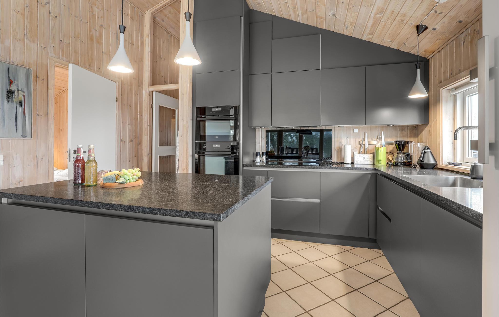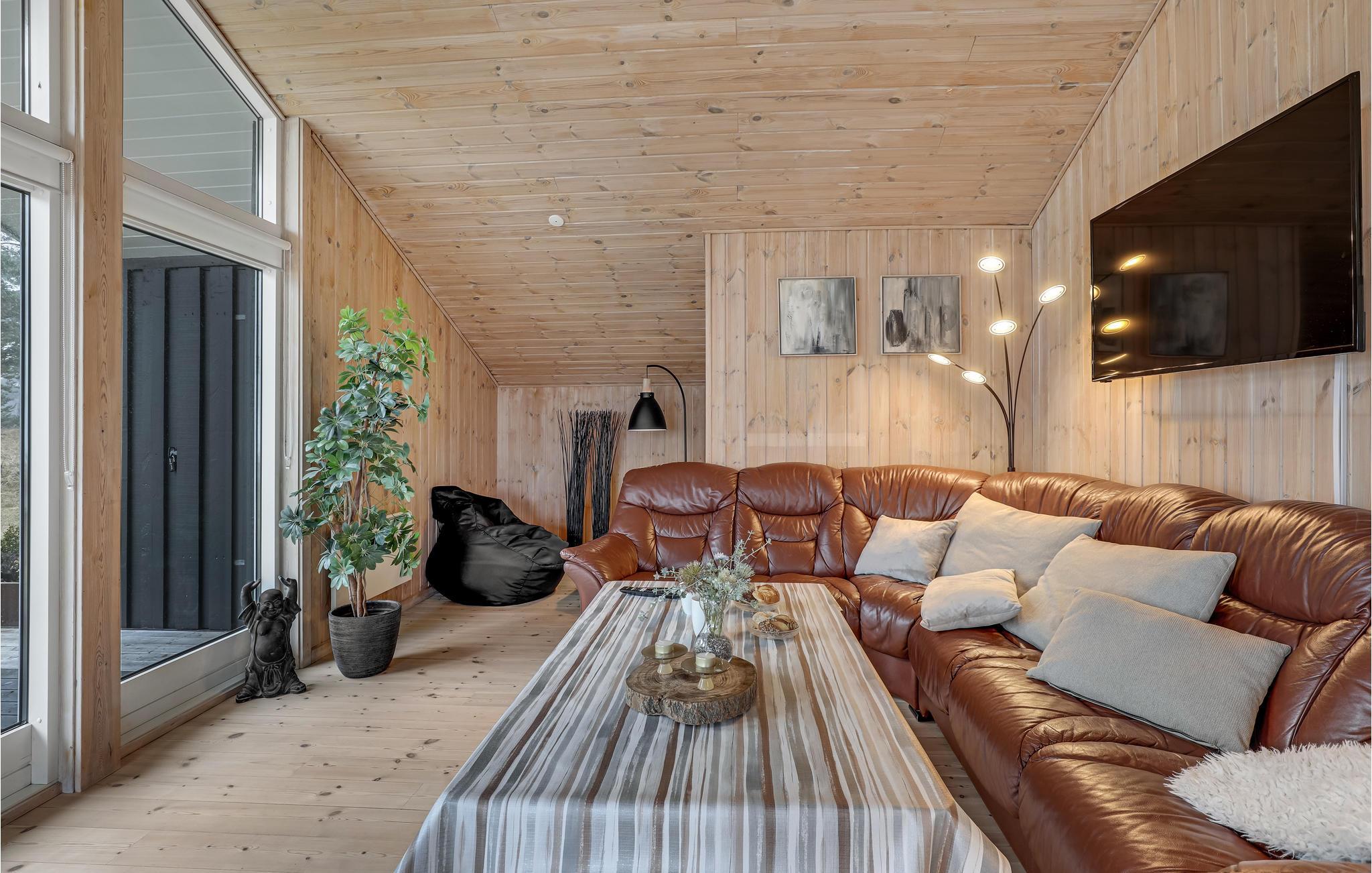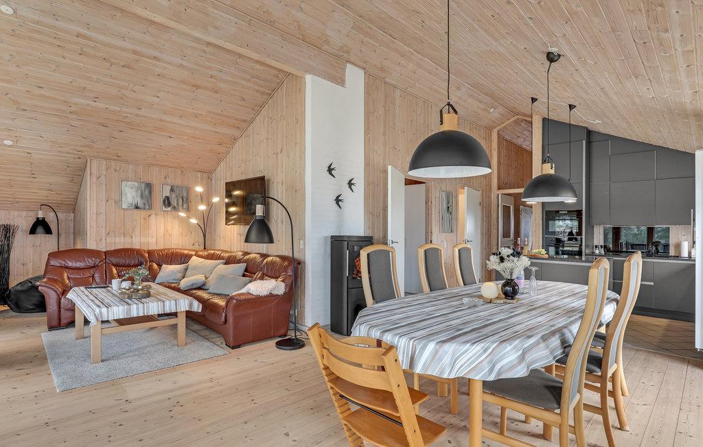 Dette indbydende hus har en idyllisk beliggenhed tæt ved stranden. Der er gode rammer til familien, for huset er en fantastisk lille oase, der får jer til at glemme alt om den travle hverdag. De lyse rum med moderne og hyggelig indretning gør huset gør det nemt at slappe af. Huset er designet sådan, at I kan nyde den vidunderlige udsigt til fulde, både over dagens måltider, og når I læner jer tilbage i sofaen. I vinterhalvåret kan I skrue ekstra op for hyggen ved at tænde ild i brændeovnen og snakke om dagens oplevelser, ??mens flammerne knitrer i baggrunden.