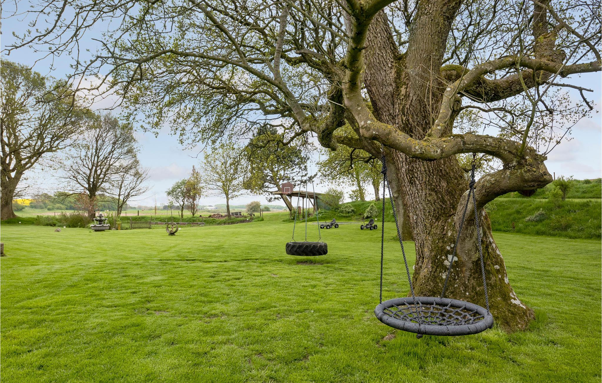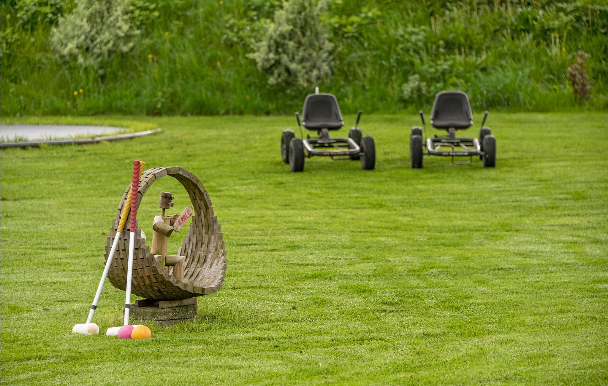 Der er adskillige aktivitetsmuligheder for store og små i feriehuset. Inviter familien over til grill eller rist skumfiduser ved bålstedet, lad børnene hoppe på trampolinen, tag et spil badminton eller noget helt andet. Der er også en 24-hullers krolfbane ved huset.