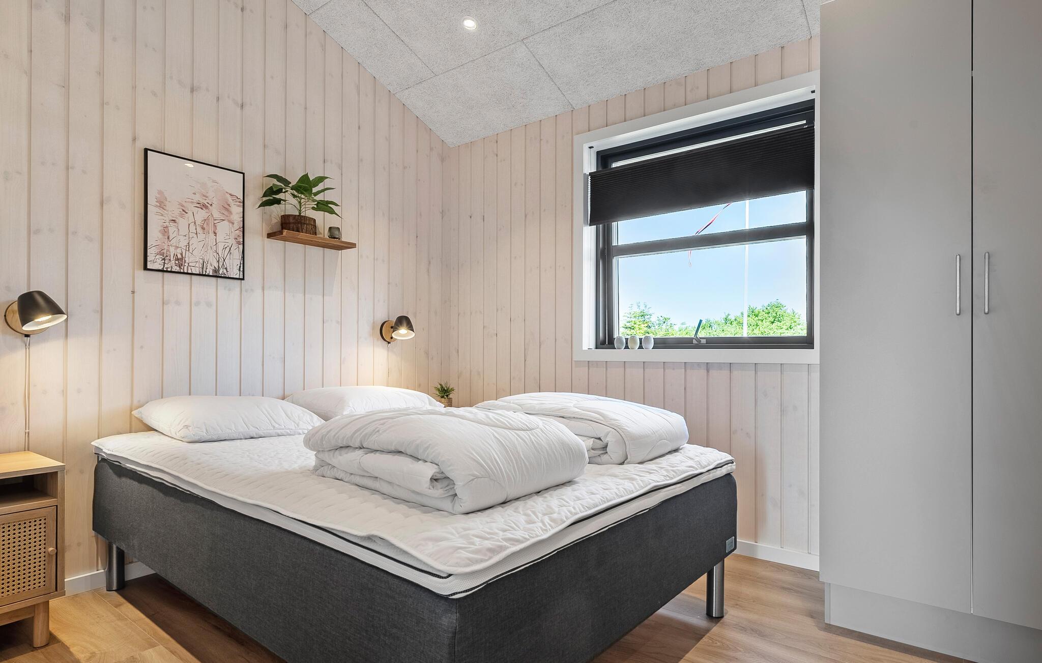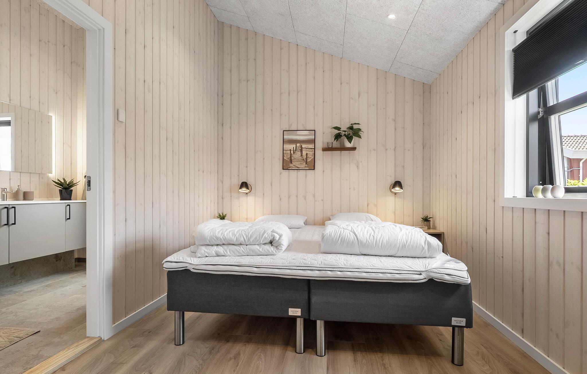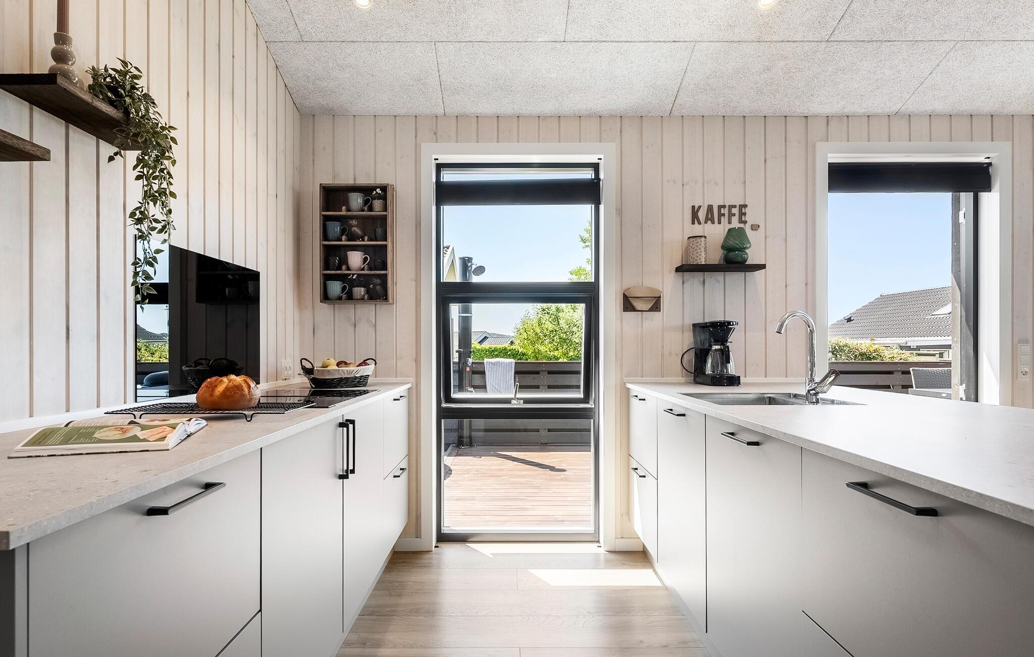 Dette stilfulde feriehus er ideelt til et afslappende ophold tæt på stranden. Glæd jer til møbler med lækre kvalitetsløsninger, et gennemtænkt indretningskoncept og solrige timer på den store terrasse. Slap af i den lyse opholdsstue med højt til loftet, store vinduer og et hyggeligt sofahjørne. Brug det moderne køkken med kogeø og masser af opbevaringsplads til fælles måltider. Det lange spisebord har plads til hele familien. Træk jer tilbage til den charmerende sovealkove for en afslappende læseoplevelse.
