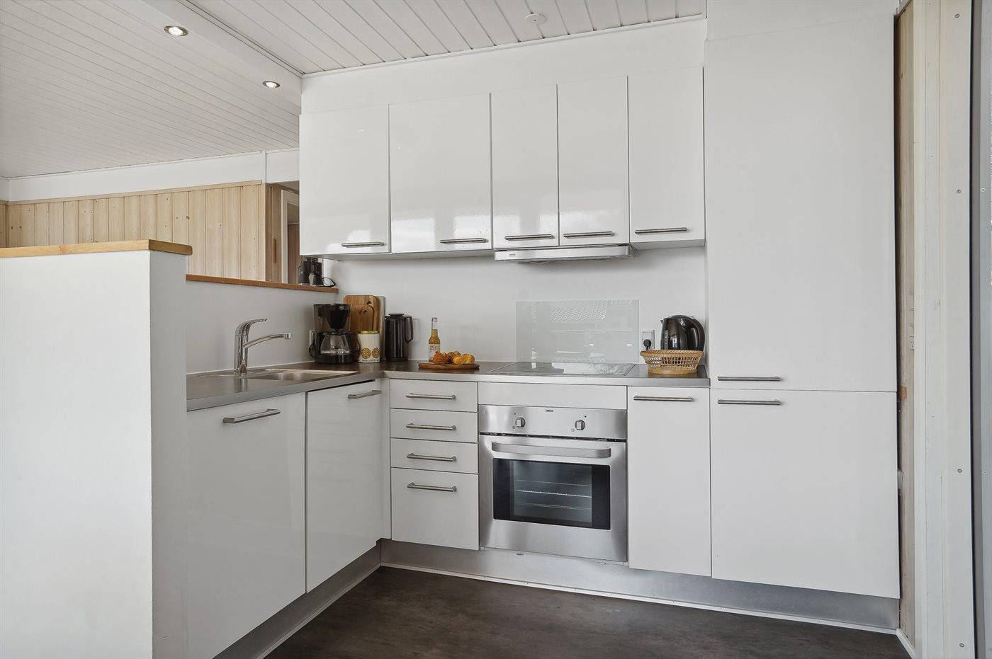 Køkkenet er udstyret med 1 køleskab. Der er 4 keramiske kogeplader, varmluftovn, mikrobølgeovn samt opvaskemaskine.