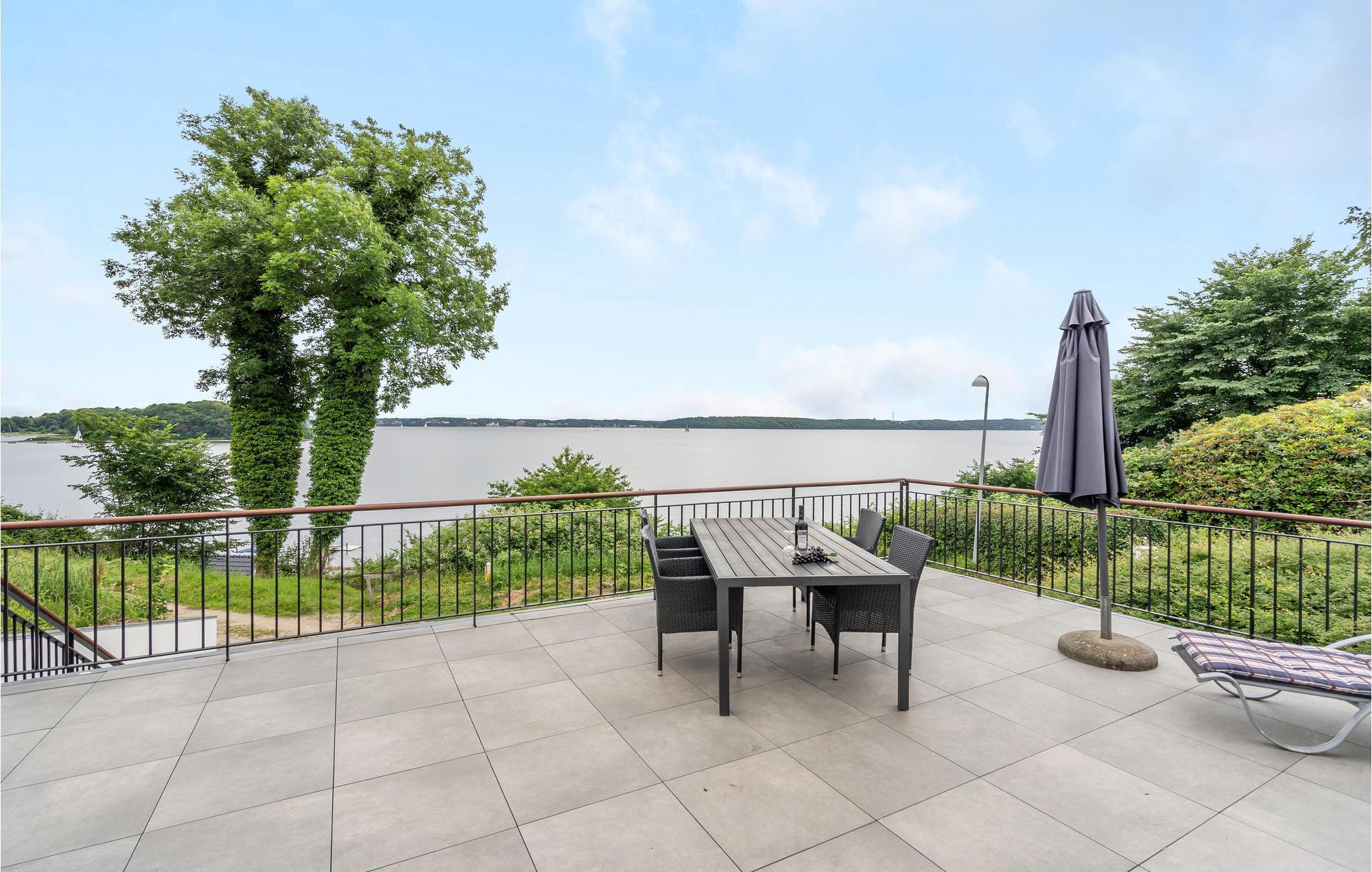 Eksklusivt feriehus med panoramaudsigt over Flensborg Fjord i fredelige Sønderhav, tæt ved vandet og gourmetrestauranter.