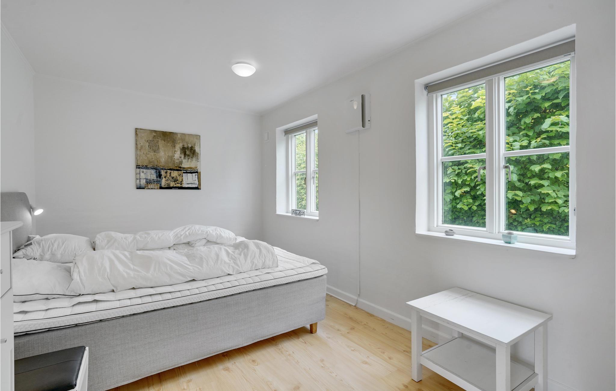 Dette dejlige feriehus blev opført i 2005. Med to sammenbyggede længer med gavle ud mod vandet bærer det en tydelig inspiration fra de mange små bådshaller, der i gamle dage prægede kystlandskabet omkring fjorden. Husets veludstyrede køkken ligger i åben forbindelse med spiseafdelingen og opholdsstuen. Her skaber fine skifergulve, lofter til kip sammen med et fantastisk lysindfald en lys og venlig atmosfære. Tænder du op i brændeovnen, fuldender den knitrende ild sommerhusstemningen. I den ene af husets længer ligger master bedroom, som har egen adgang til et badeværelse med bruseniche. I den anden længe er der yderligere to soveværelser samt et badeværelse med bruseniche, vaskemaskine og tørretumbler. Fra stuen og alrummet er der direkte adgang til en hævet terrasse, hvor formiddagsbrunchen og eftermiddagens forfriskninger kan nydes i solens varme skær - oven i købet krydret med en uforlignelig spektakulær udsigt til Flensborg Fjord. Bag huset er der endnu en terrasse, hvor I kan grille i aftensolen. Huset ligger uden tætte naboer, så der er rig mulighed for at slappe af og suge til dig af omgivelsernes ro. Over alt i huset kan I benytte den trådløse internetforbindelse. Trænger du til en dukkert, skal du kun gå få skridt fra huset, før du står med tæerne i vandkanten.