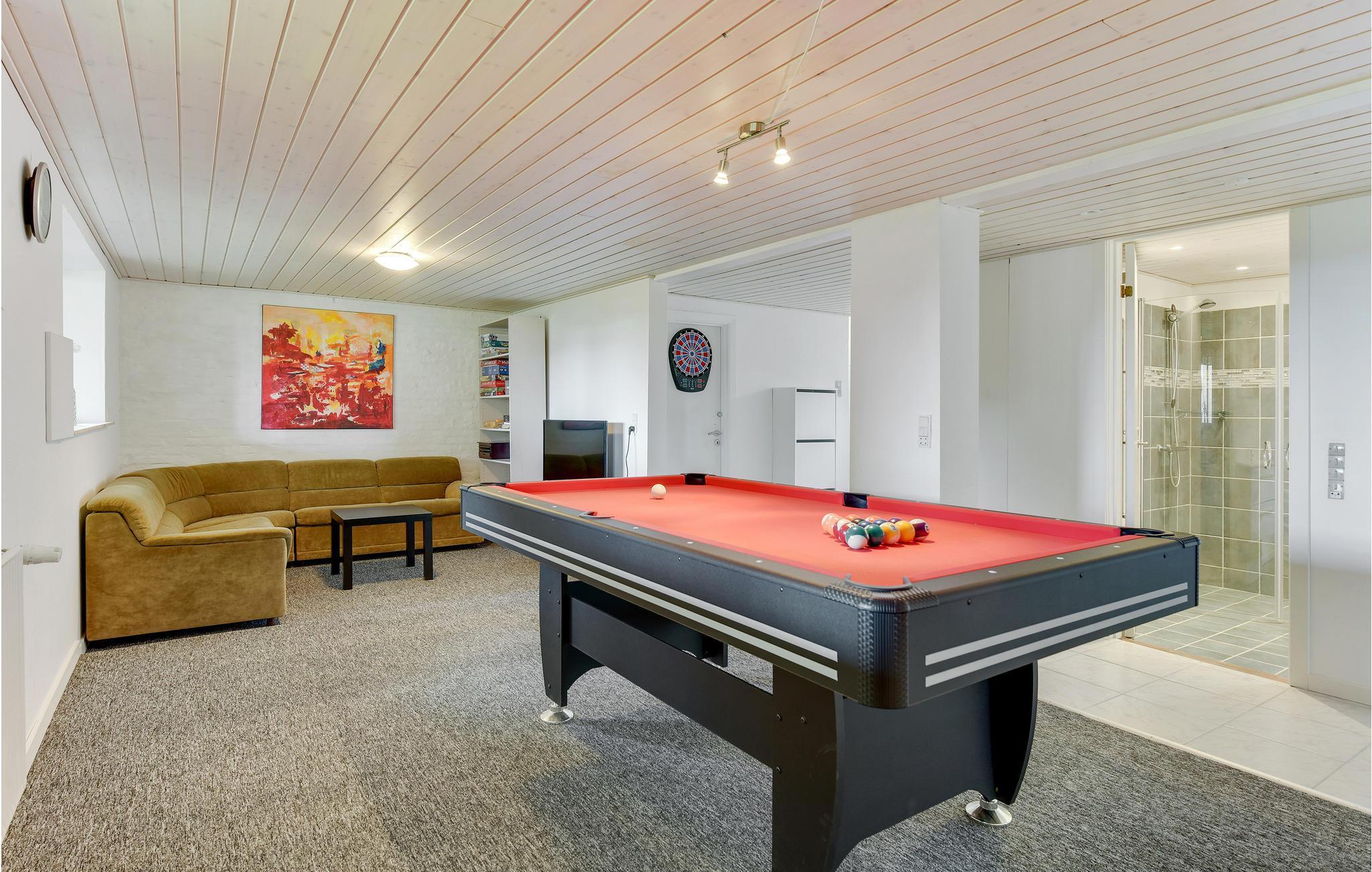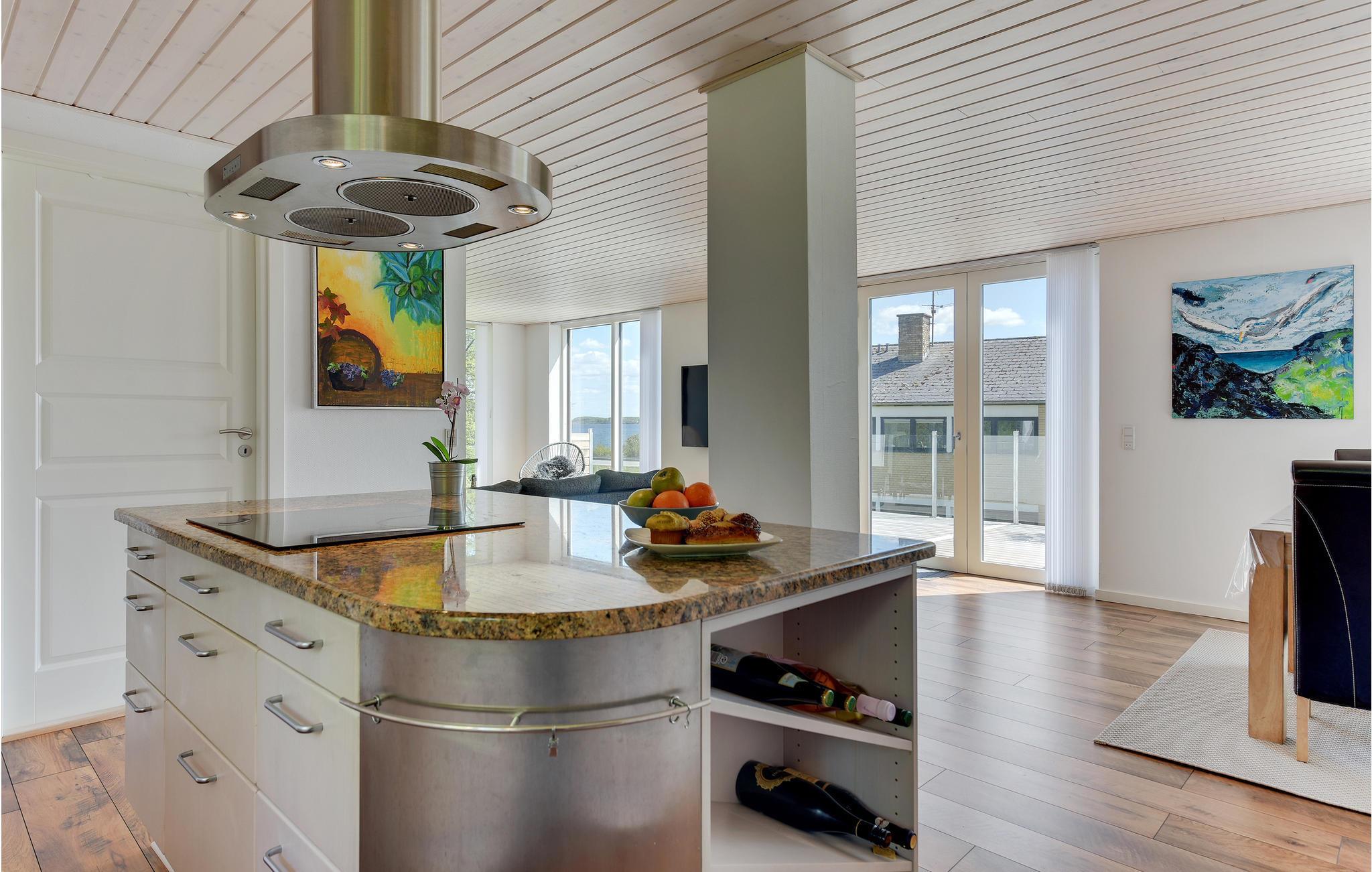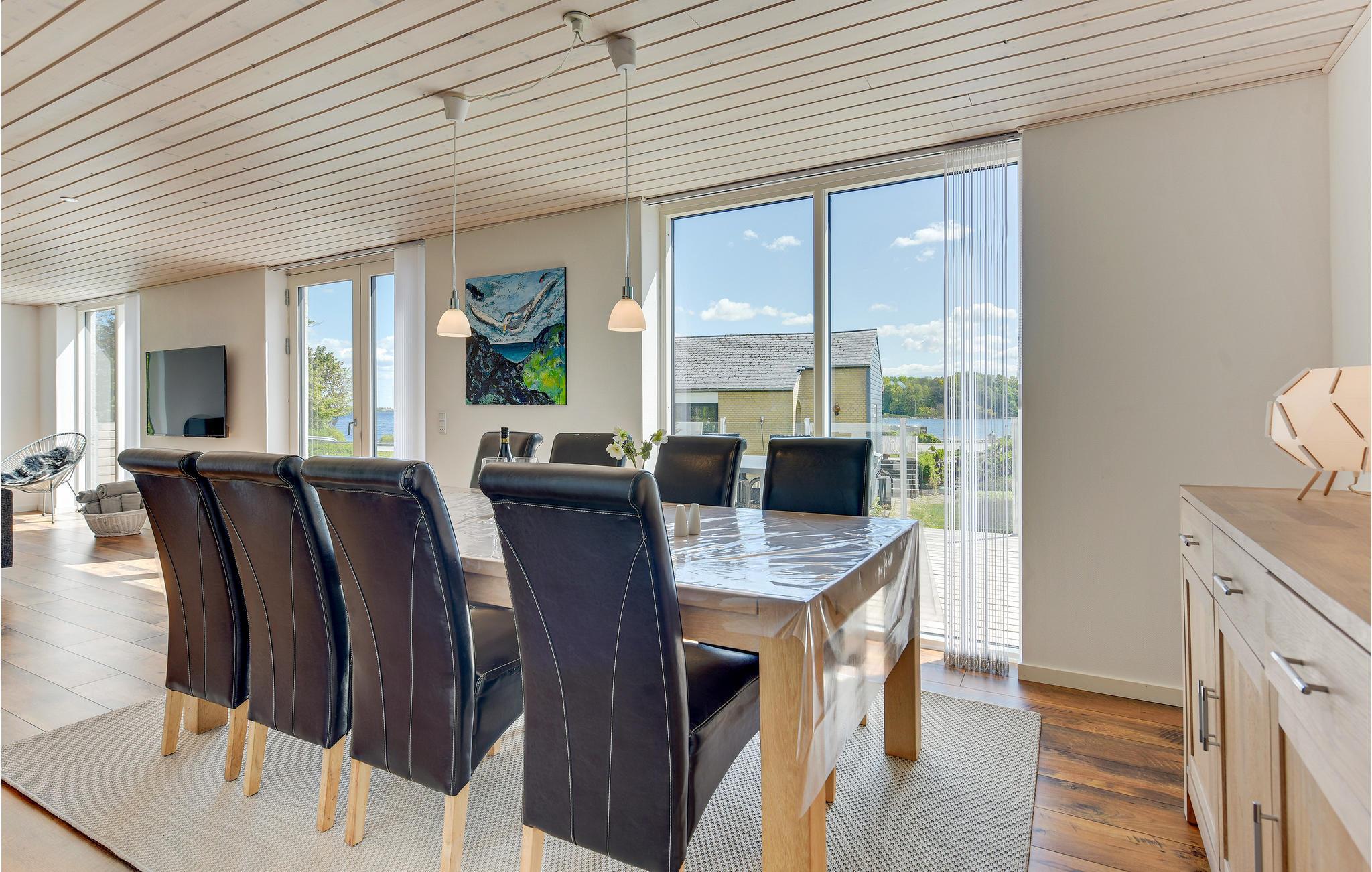 Dette store og dejlige feriehus er beliggende ved Sønderhav Strand. Både fra huset og terrassen er der en fantastisk udsigt over vandet og Flensborg Fjord. Husets åbne køkken er beliggende i forbindelse med spiseafdelingen og opholdsstuen. Her er der både en brændeovn og en energivenlig varmepumpe, som I kan benytte på de kølige dage og aftener. Huset har et dejligt aktivitetsrum, hvor I kan spille pool og hygge med forskellige aktiviteter, når vejret ikke er til udendørs aktiviteter.