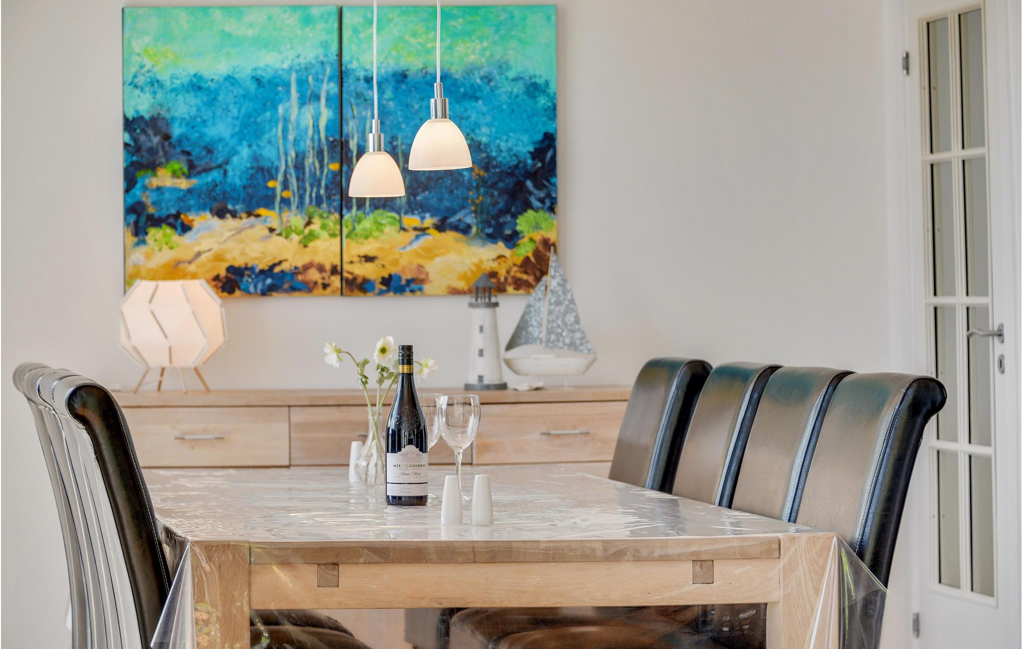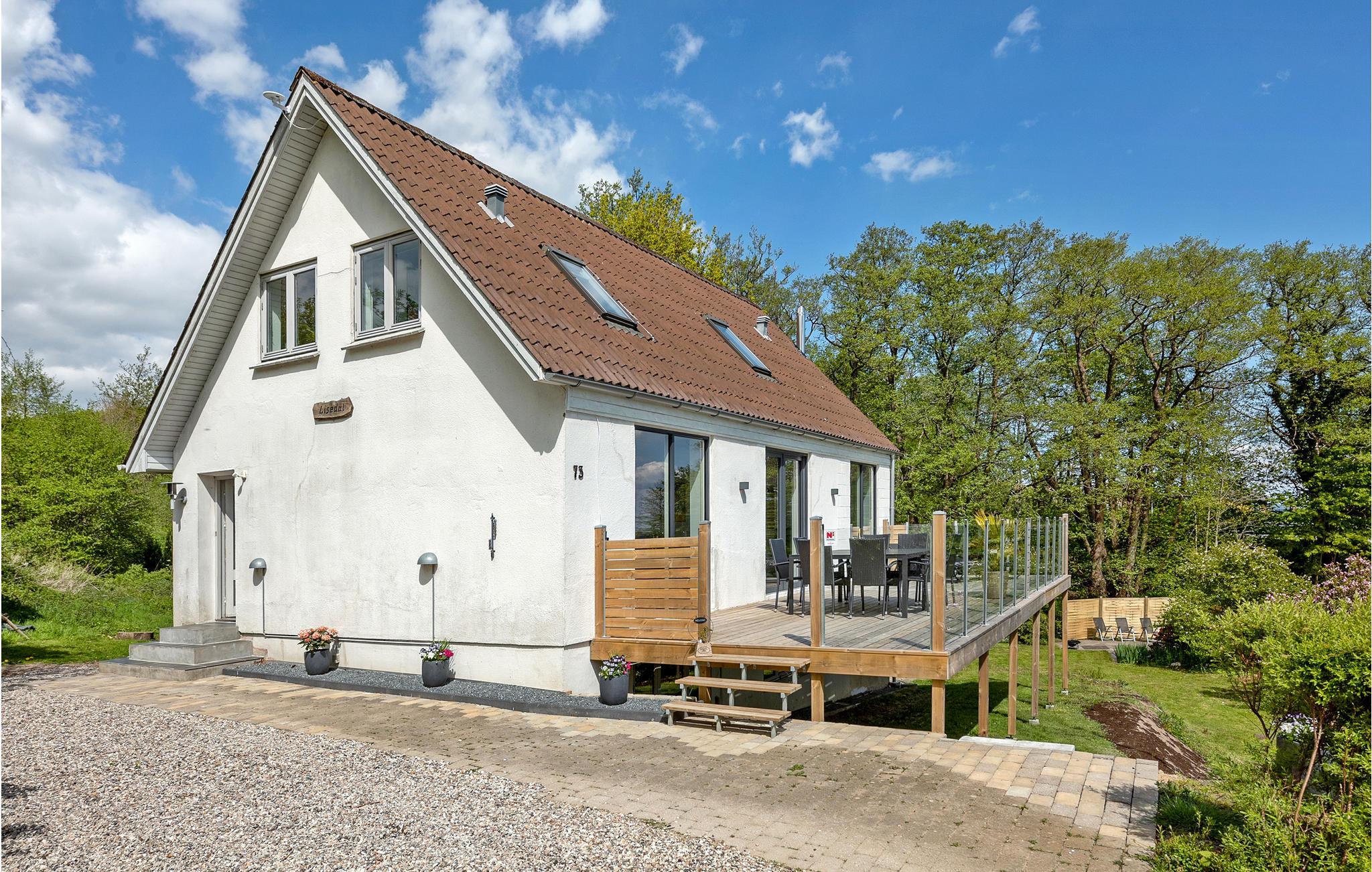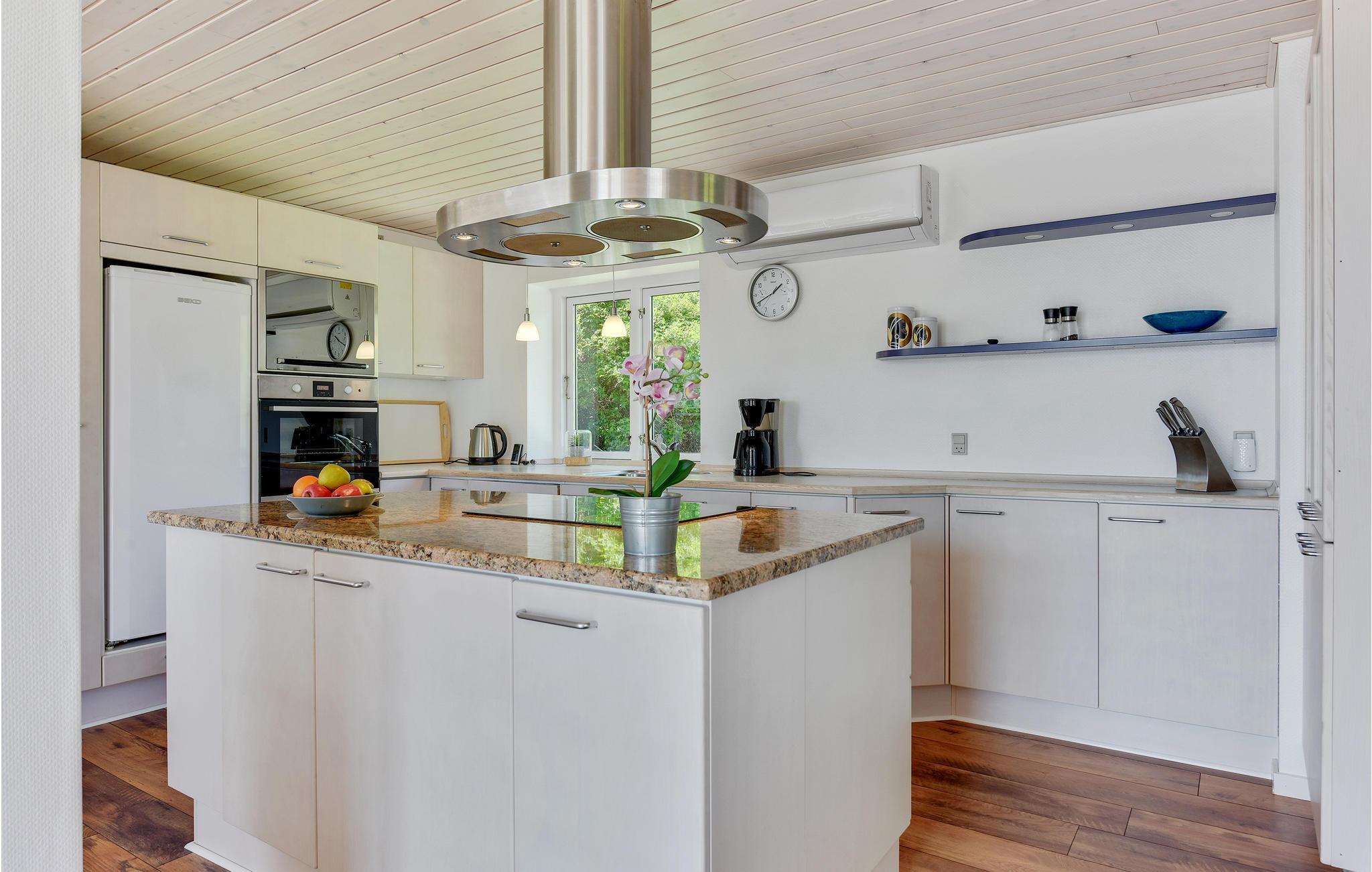 Dette store og dejlige feriehus er beliggende ved Sønderhav Strand. Både fra huset og terrassen er der en fantastisk udsigt over vandet og Flensborg Fjord. Husets åbne køkken er beliggende i forbindelse med spiseafdelingen og opholdsstuen. Her er der både en brændeovn og en energivenlig varmepumpe, som I kan benytte på de kølige dage og aftener. Huset har et dejligt aktivitetsrum, hvor I kan spille pool og hygge med forskellige aktiviteter, når vejret ikke er til udendørs aktiviteter.