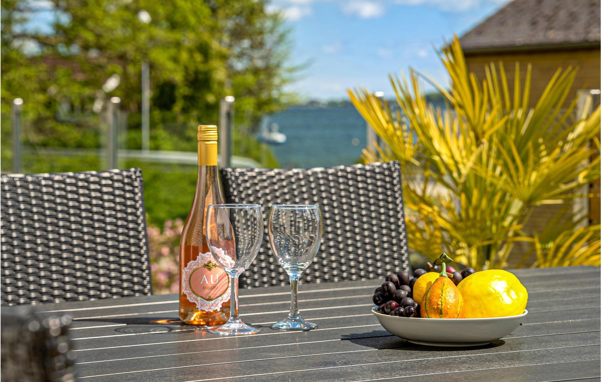 Dejligt feriehus ved Sønderhav Strand med panoramaudsigt over Flensborg Fjord og spabad.