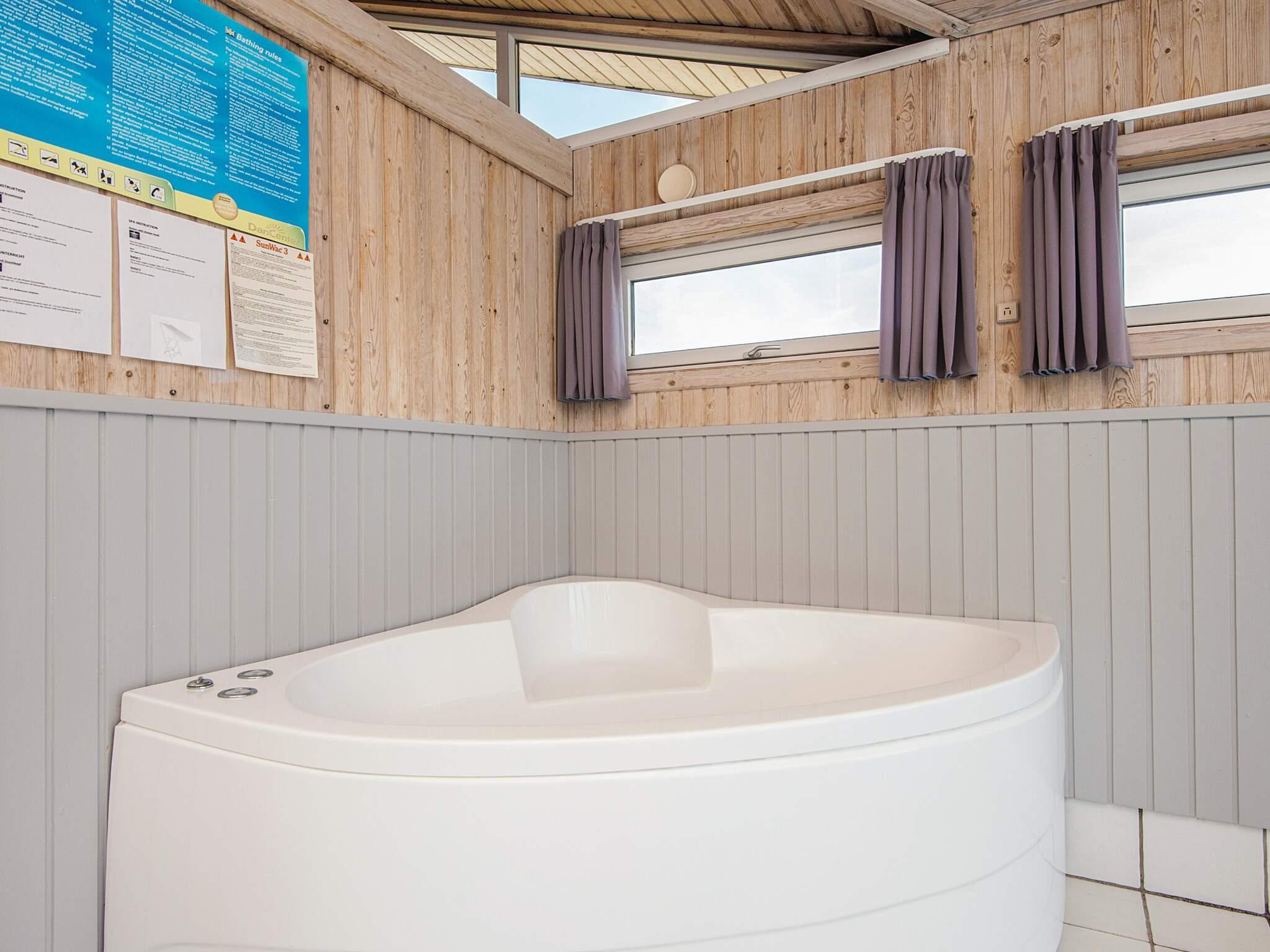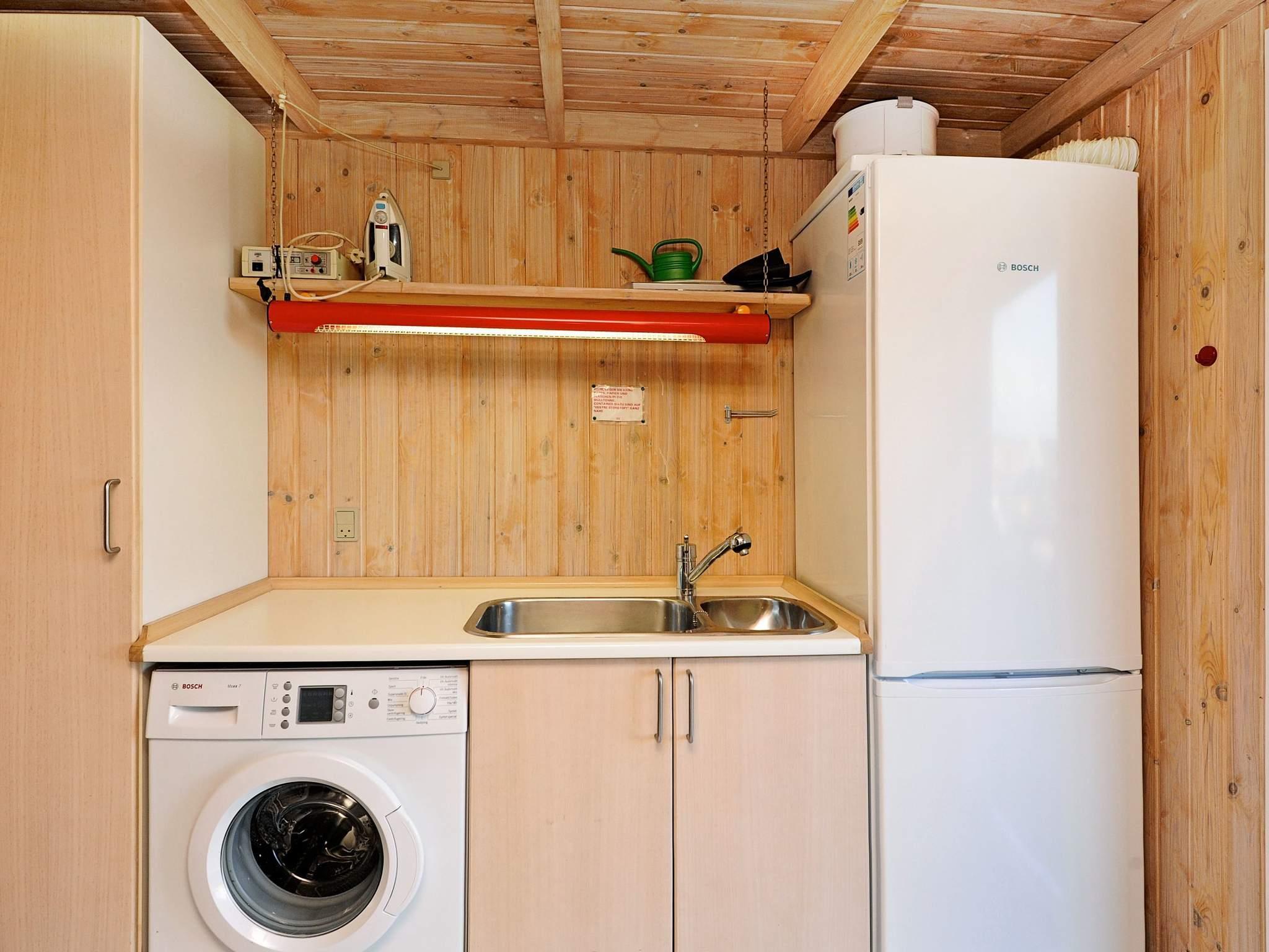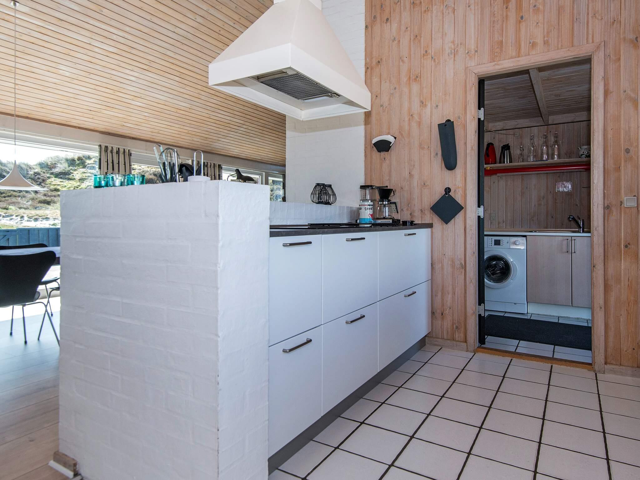 Det lyse køkken er udstyret med blandt andet opvaskemaskine, varmluftsovn/grill, mikrobølgeovn, keramiske kogeplader, rigeligt service med mere. Bryggers med vaskemaskine køle/frys. Huset har tre brusebade.