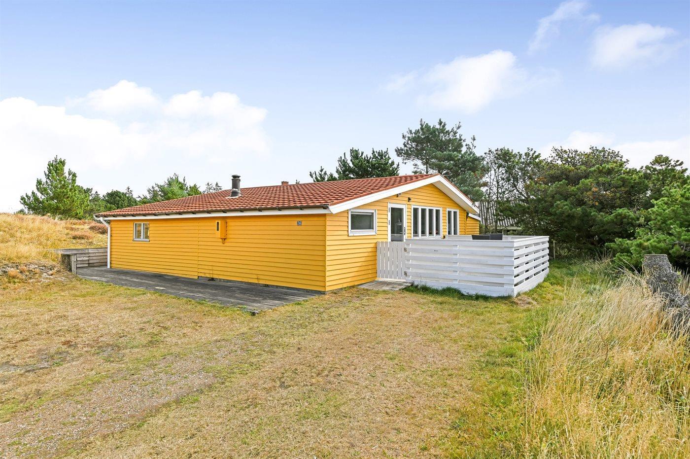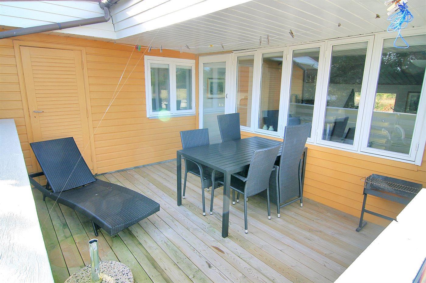 Et enkelt, men hyggeligt indrettet feriehus på dejlig grund omkranset af fyrretræer. Til huset hører 2 terrasser; 1 lukket og delvist overdækket terrasse samt 1 delvist afskærmet terrasse.