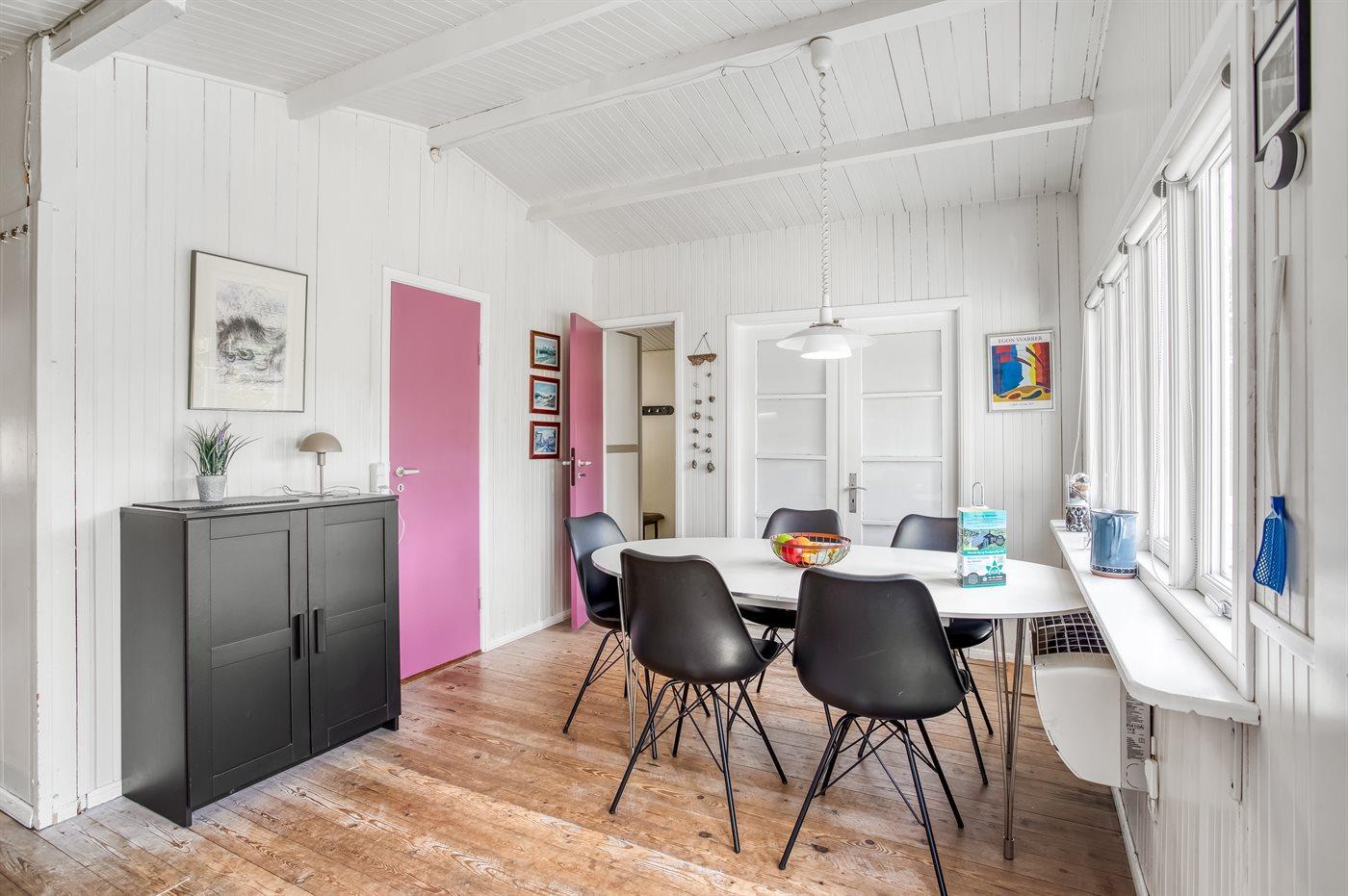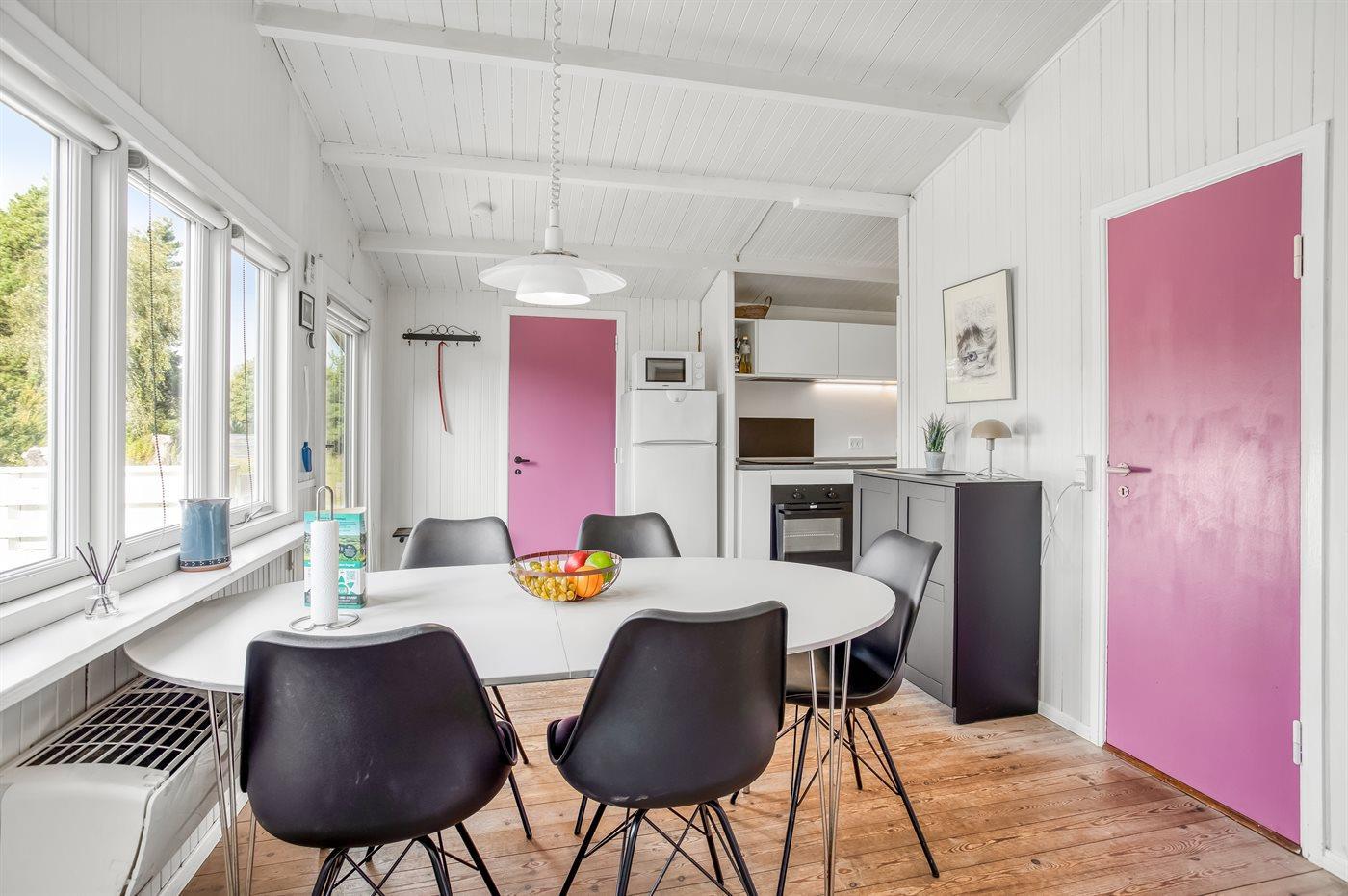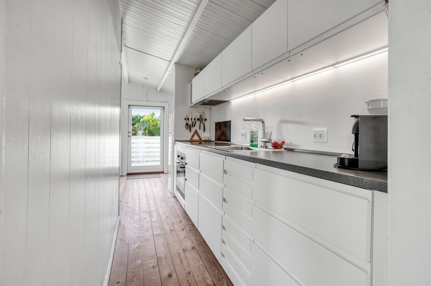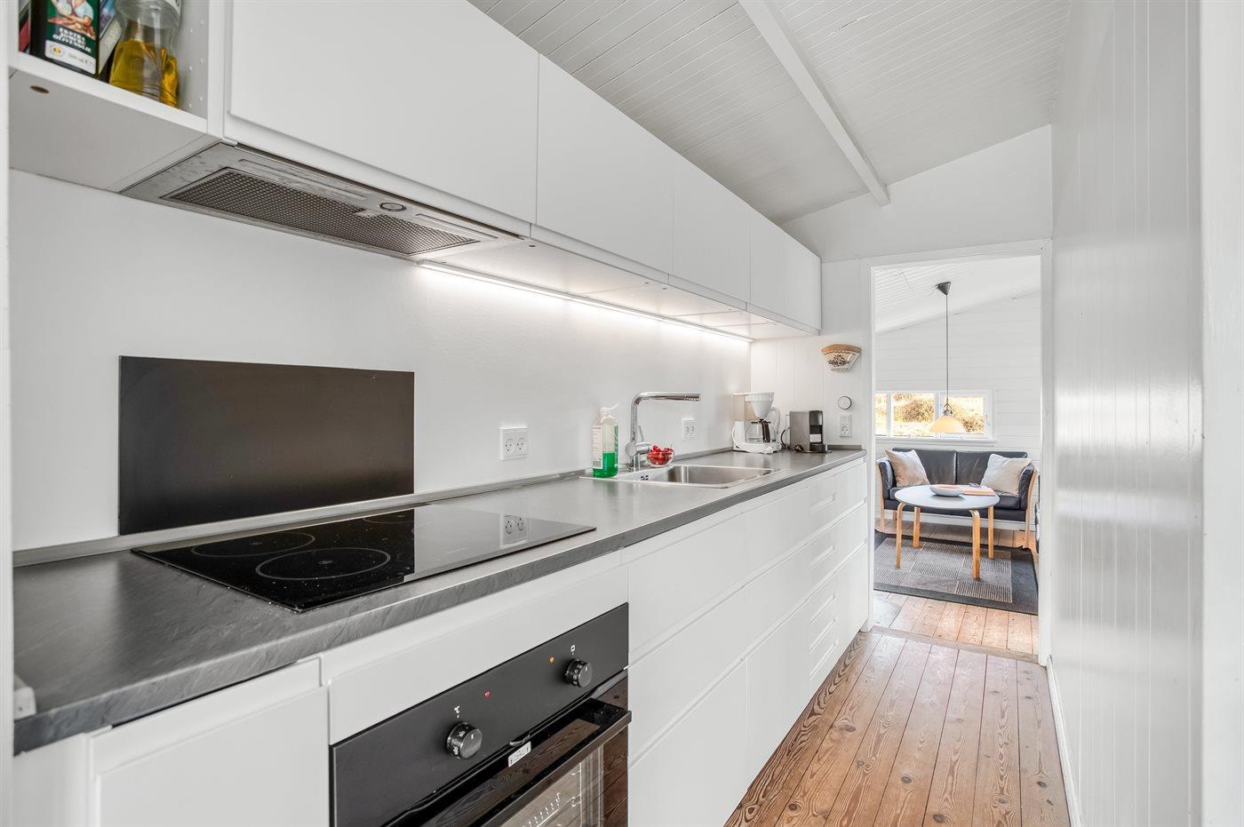 Køkkenet er kombineret med spiseafdelingen og efter et dejligt måltid kan der hygges med en lille snak over opvasken, da der ikke findes opvaskemaskine i huset.