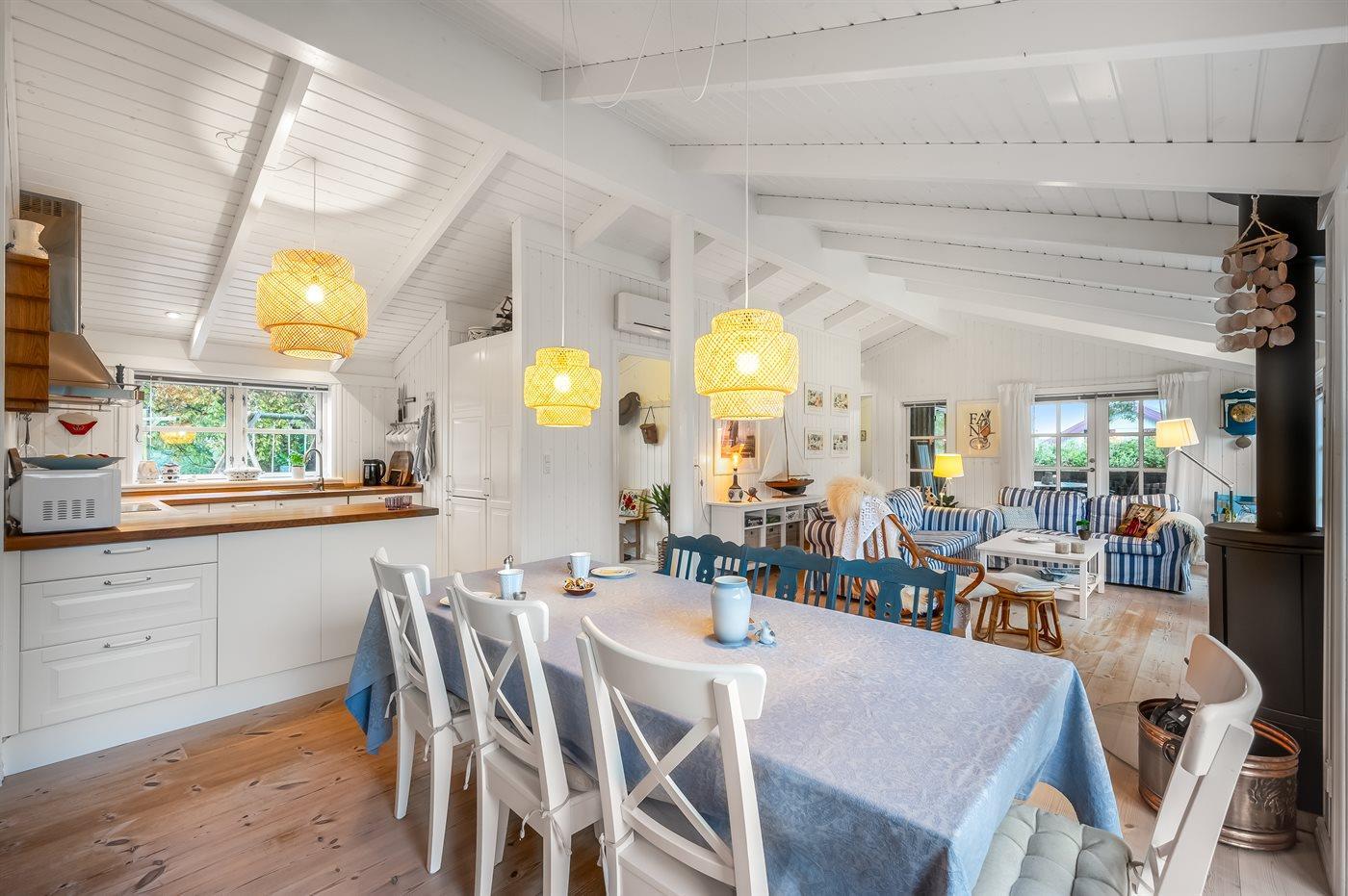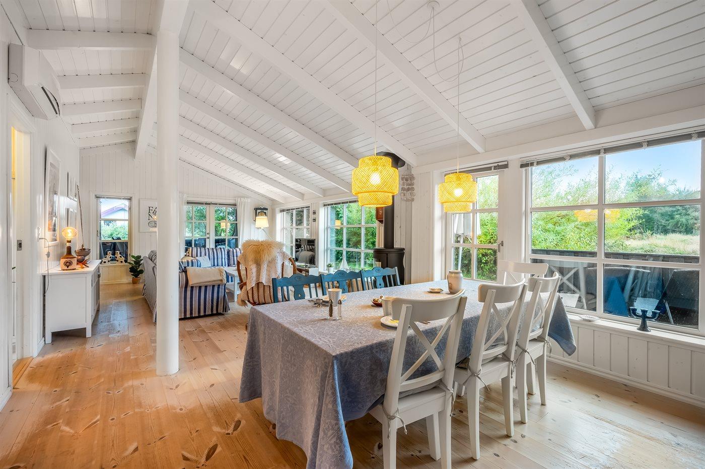 Sommerhuset egner sig til 6 personer. Ferieboligen er på 98 m² og er bygget i 2012. Det er tilladt at medbringe 1 husdyr. Ferieboligen er udstyret med energibesparende varmepumpe. Ferieboligen har vaskemaskine. Frysekapacitet på 60 liter. Der er desuden brændeovn. Til de små er der 1 stk. barnestol.