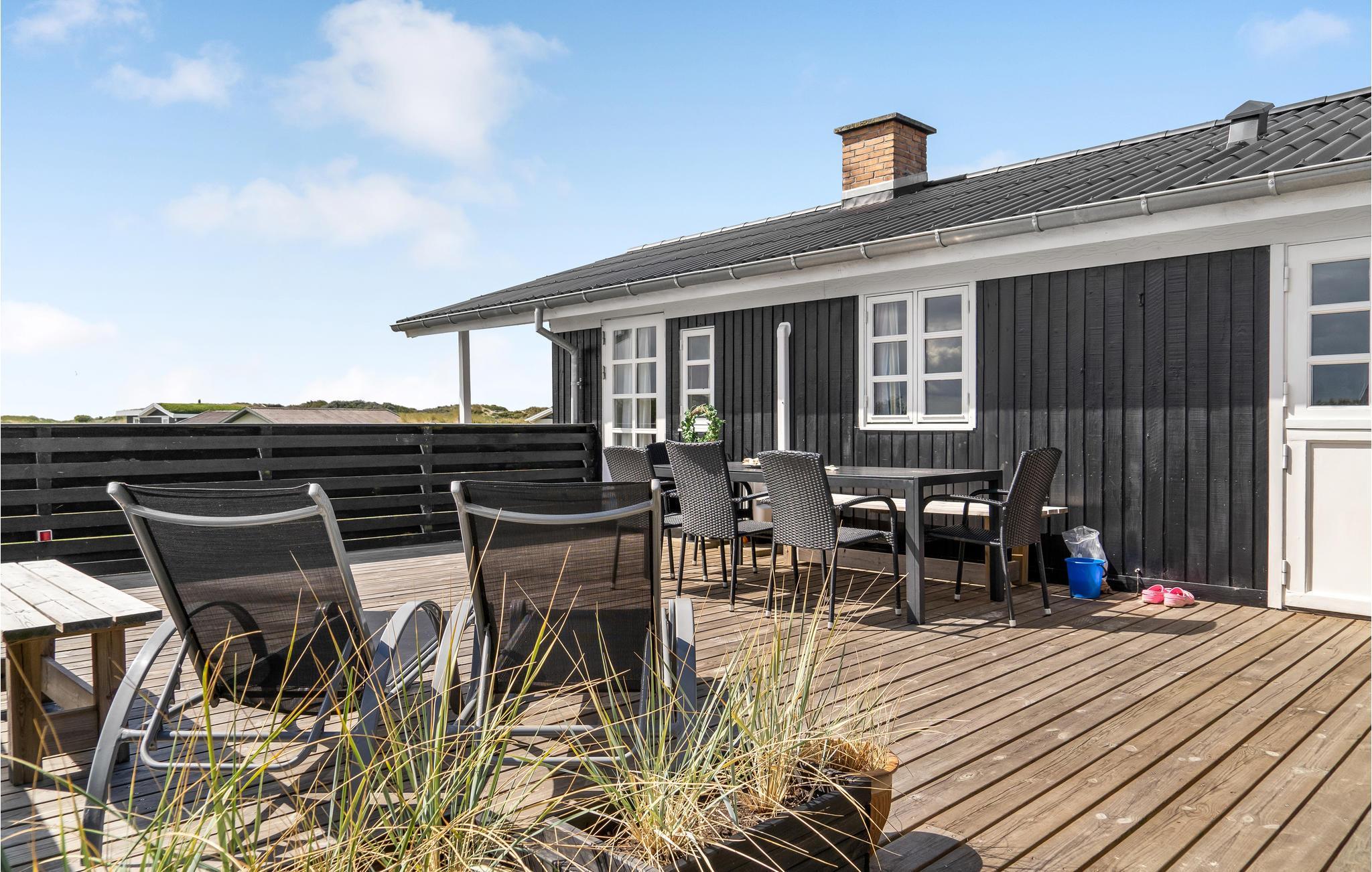 Fra køkkenet er der dør ud til den ene af husets gode terrasser, som vender mod øst med mulighed for at nyde morgenmaden udendørs i solskin. Husets 3 soverum er hyggeligt indrettet og det ene har udgang til den ene af terrasserne. I nærheden ligger Sønderho, som med sine hyggelige snoede gader bestemt er et besøg værd - her finder I små spisesteder, specialforretninger og en lille dagligvarebutik ligesom Fanø Kunstmuseum også er åbent i sommerhalvåret for de kunstinteresserede.