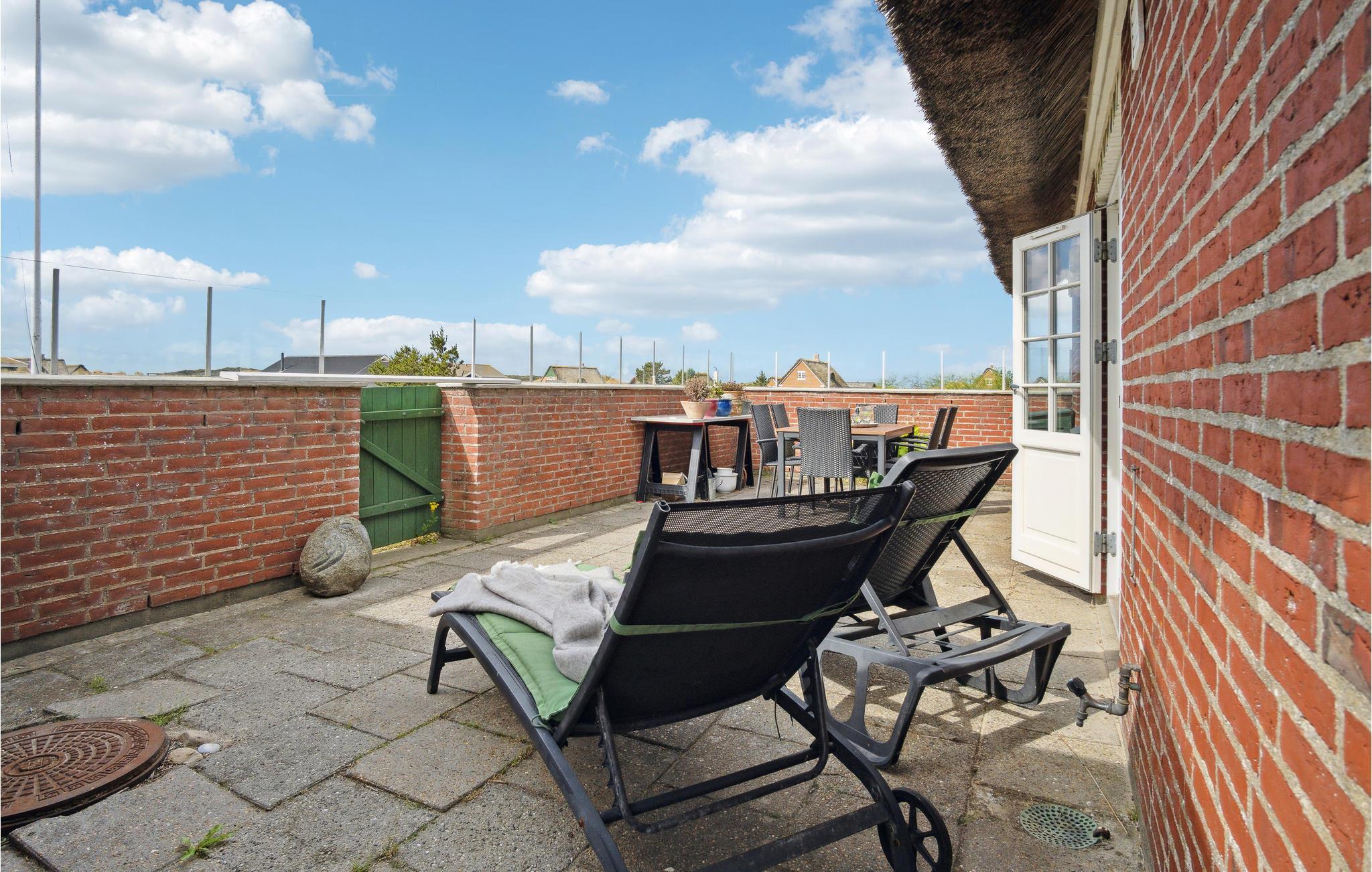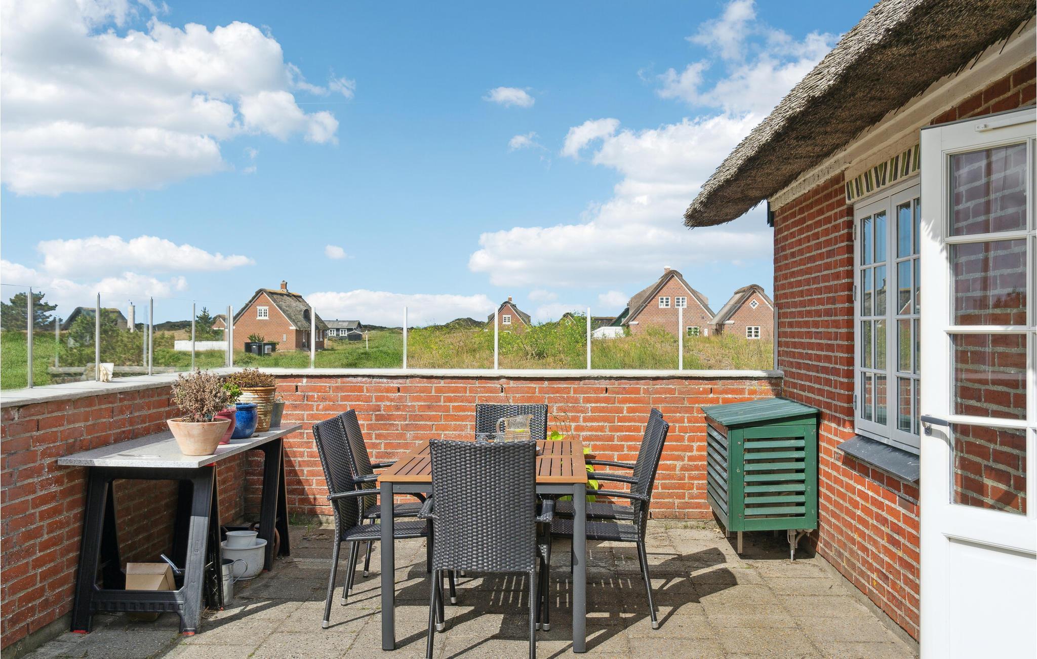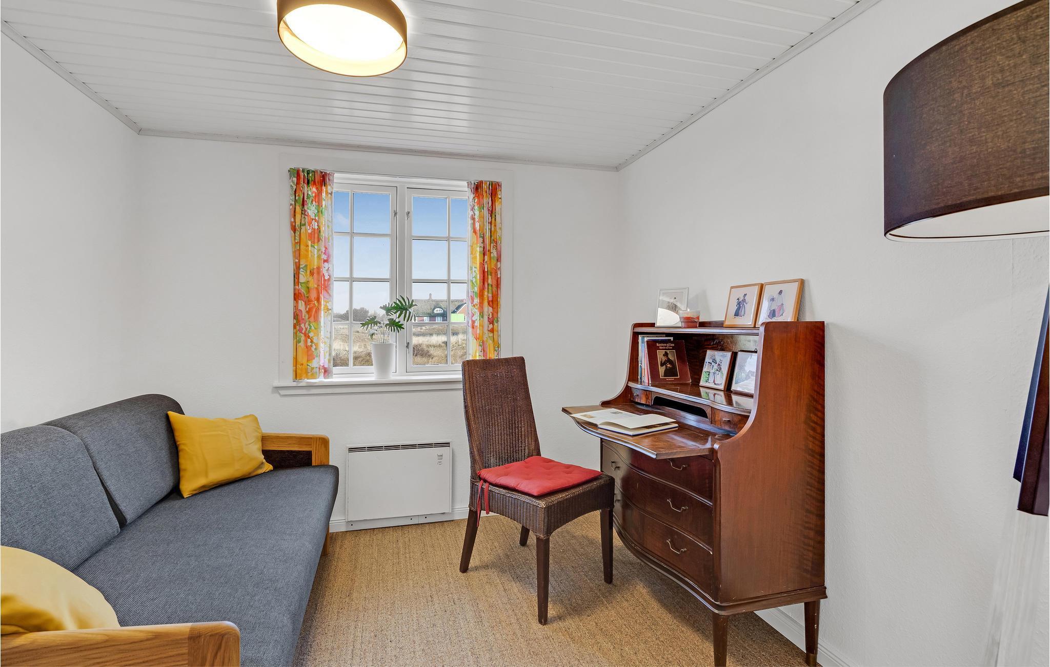 Huset ligger tæt på både Sønderho og stranden. Fra 1. sal er der udsigt til Vesterhavet. God indretning med køkken i åben forbindelse til stuen og direkte udgang til den sydvendte terrasse. Der er et ekstra lille værelse, som I kan benytte enten kontor eller læsestue. Der er to store soveværelser på 1. sal.