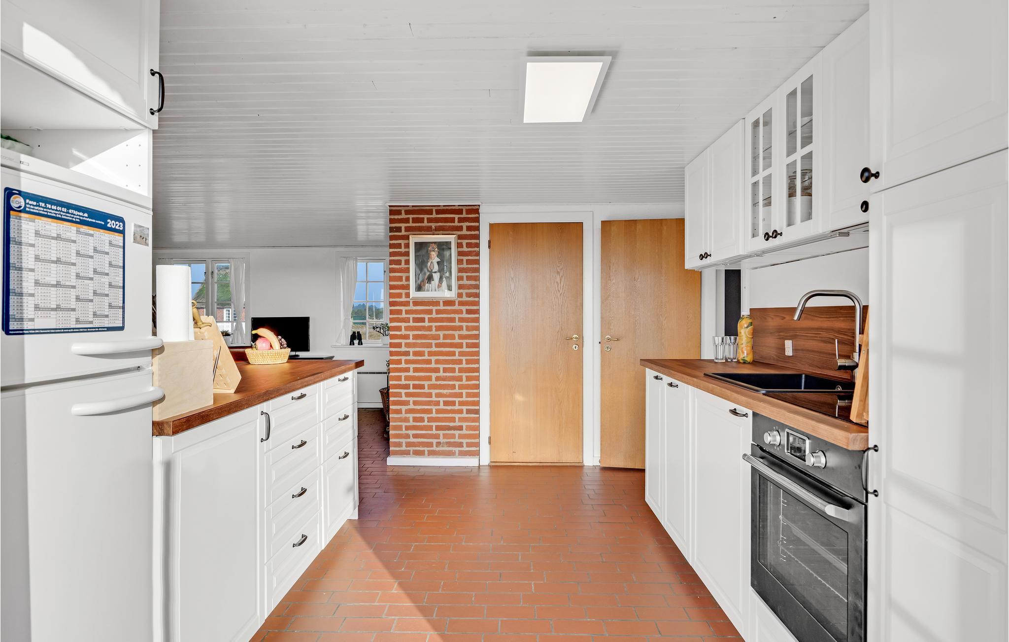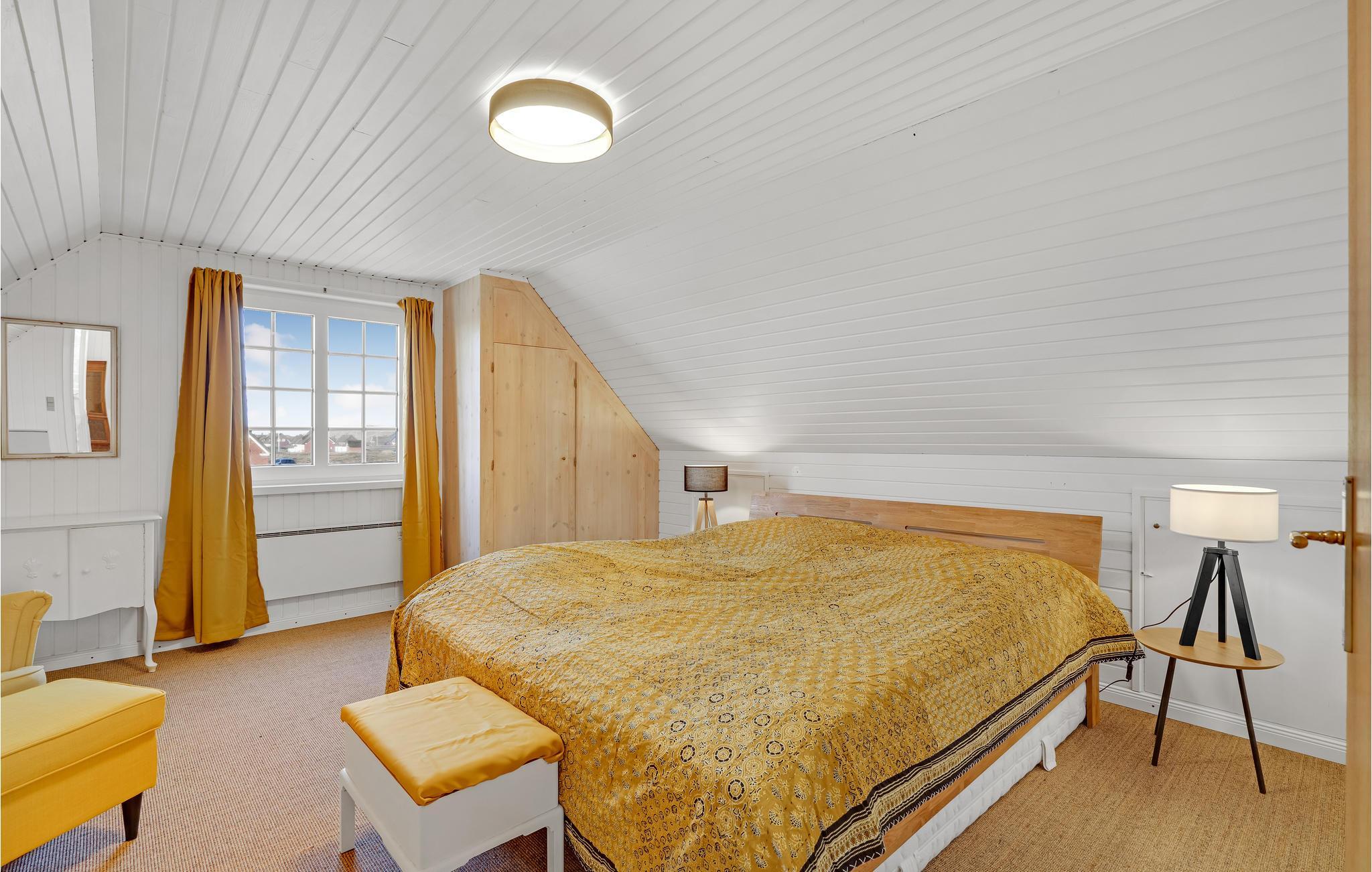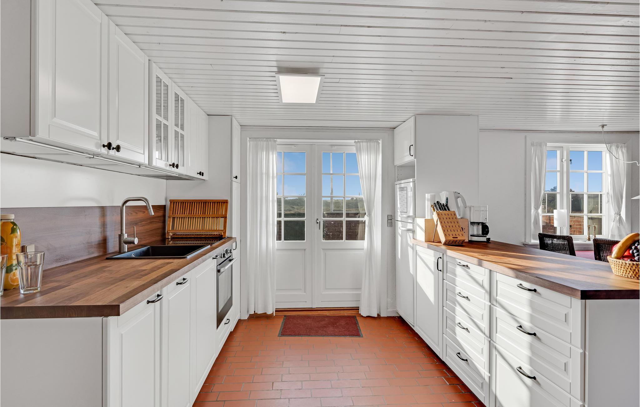 Huset ligger tæt på både Sønderho og stranden. Fra 1. sal er der udsigt til Vesterhavet. God indretning med køkken i åben forbindelse til stuen og direkte udgang til den sydvendte terrasse. Der er et ekstra lille værelse, som I kan benytte enten kontor eller læsestue. Der er to store soveværelser på 1. sal.