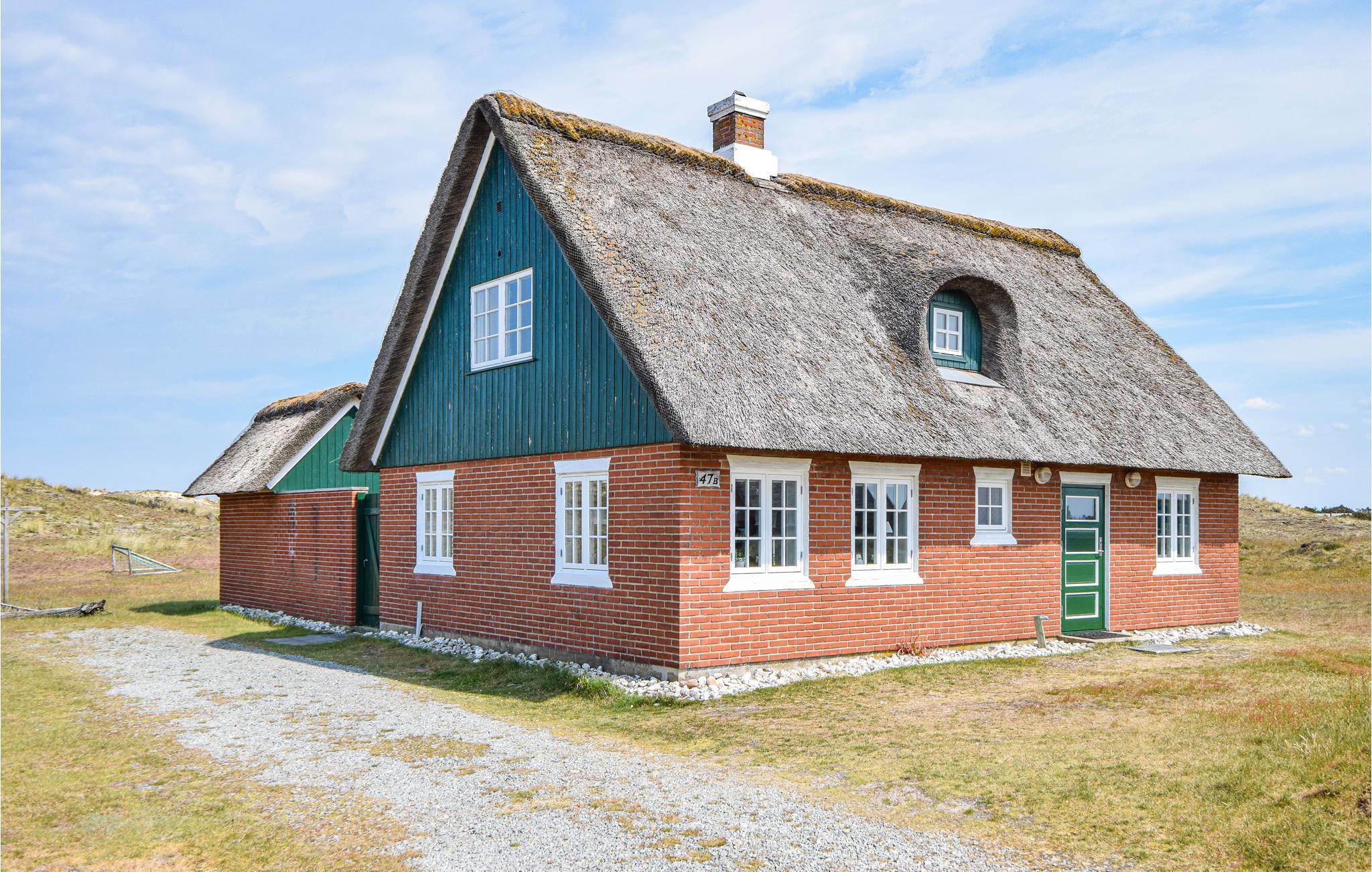 Fanøhus opført i sten og med stråtag på stor naturgrund, som støder op til et fredet areal.