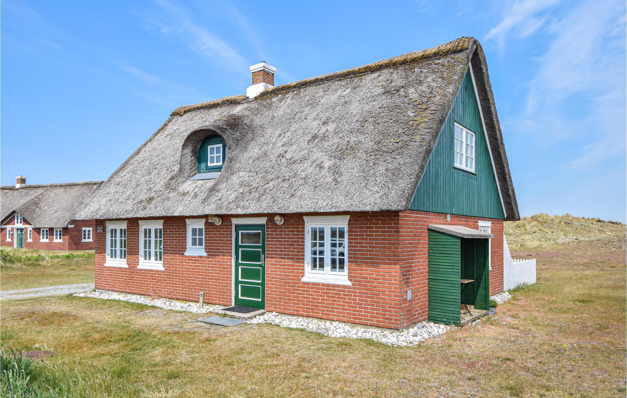 Det indeholder stue med brændeovn, fjernsyn og trådløst internet og spiseafdeling, Varmepumpen minimerer strømforbruget. Køkken med elkomfur, opvaskemaskine og køleskab med fryser. På første sal er der soveværelse med dobbeltseng. Fra soveværelset er der udsigt over Vesterhavets brusende bølger. To værelser med enkeltsenge. Afskærmet terrasse med havemøbler og en. Udhus i sten med stråtag, her står vaskemaskinen.