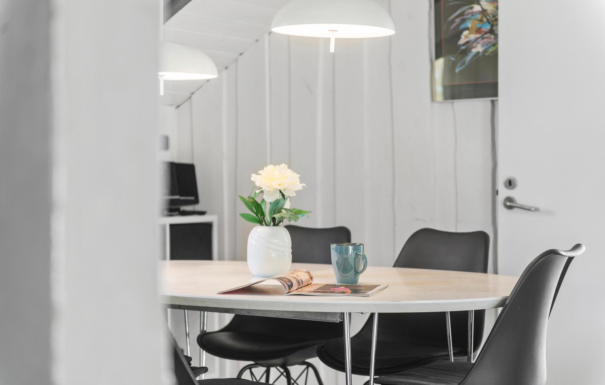 Huset er hyggeligt indrettet med masser af charmerende detaljer og har to terrasser med havemøbler, der indbyder til udeliv. Gør lækre sommerretter klar på grillen, mens børnene tumler på plænen. Køkken og stue i ét, så I kan snakke med gæsterne i stuen, mens I laver mad.