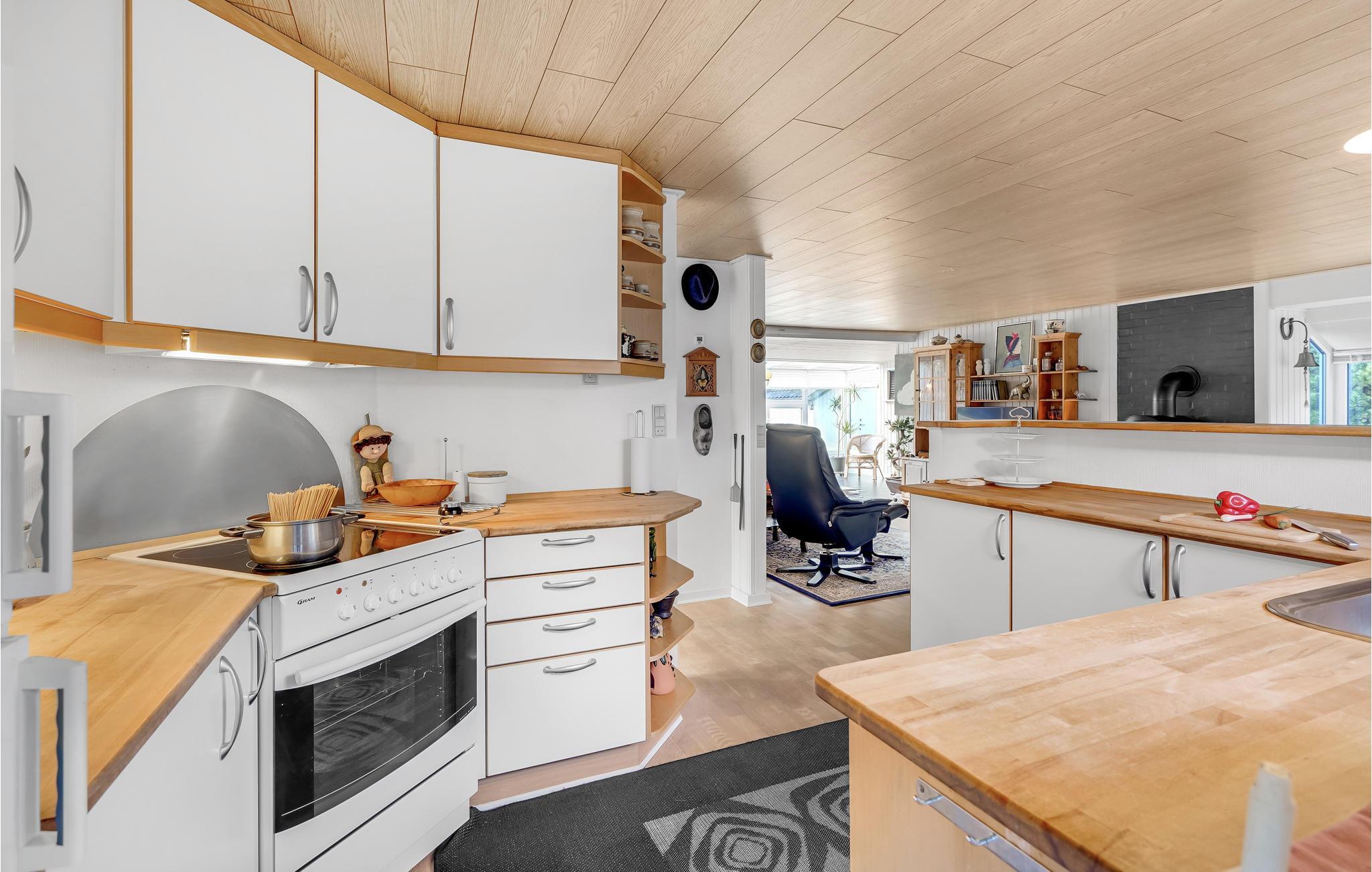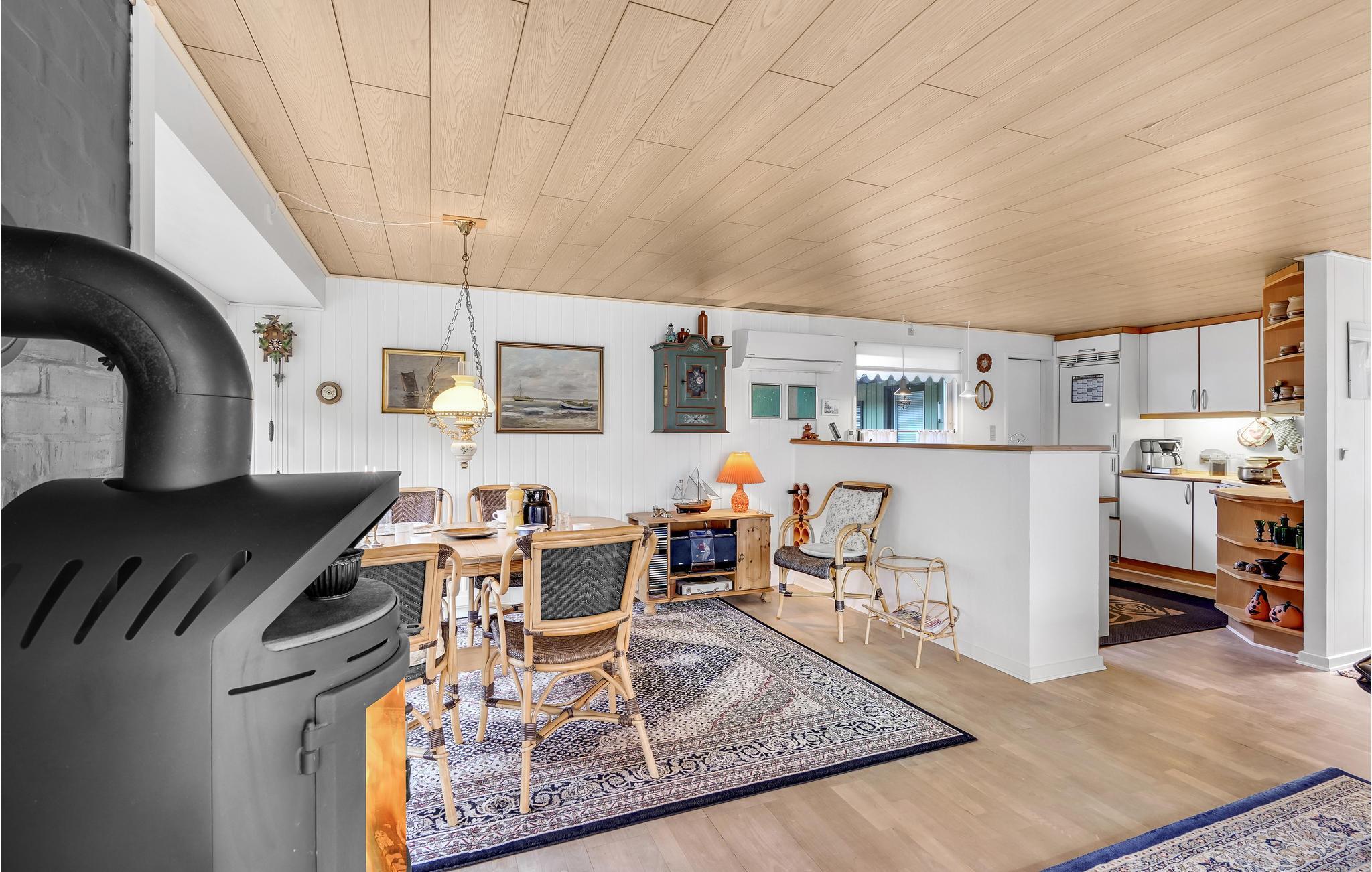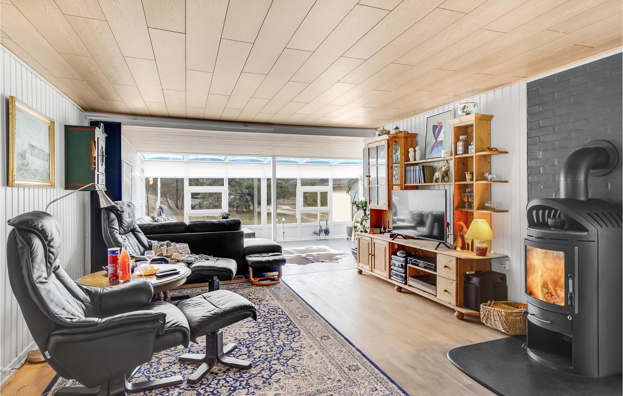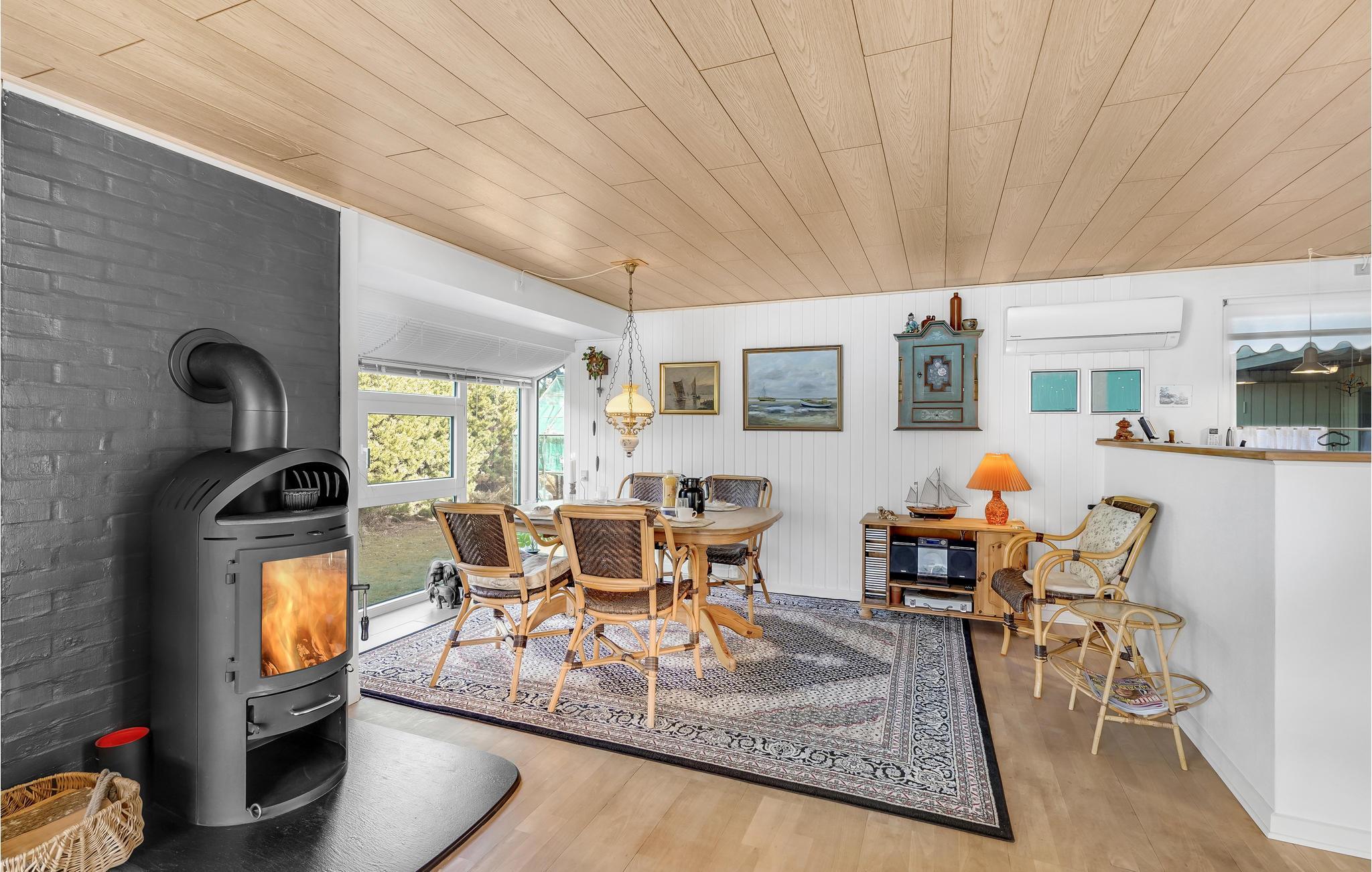 Det rummelige hus byder på en stor, lys udestue, hvor I kan nyde solstrålerne fra det tidlige forår. Omkring huset er der flere små terrasser og en lille lukket gårdhave, hvor der er optimale betingelser for at nyde solen. Der er godt 10 minutters gang ned til vandet, så her kommer I sikkert også til at tilbringe en god del af tiden.
