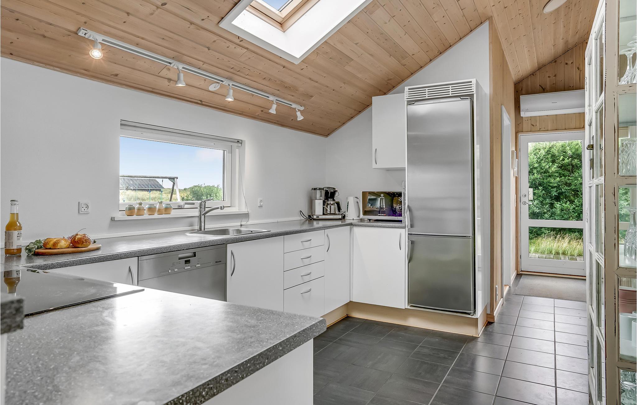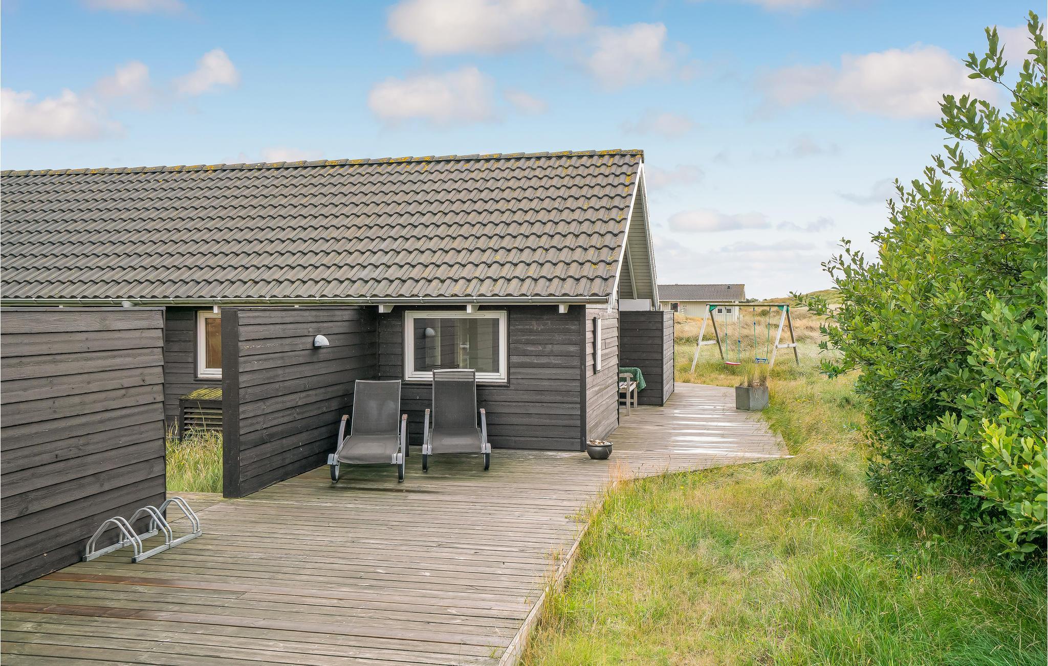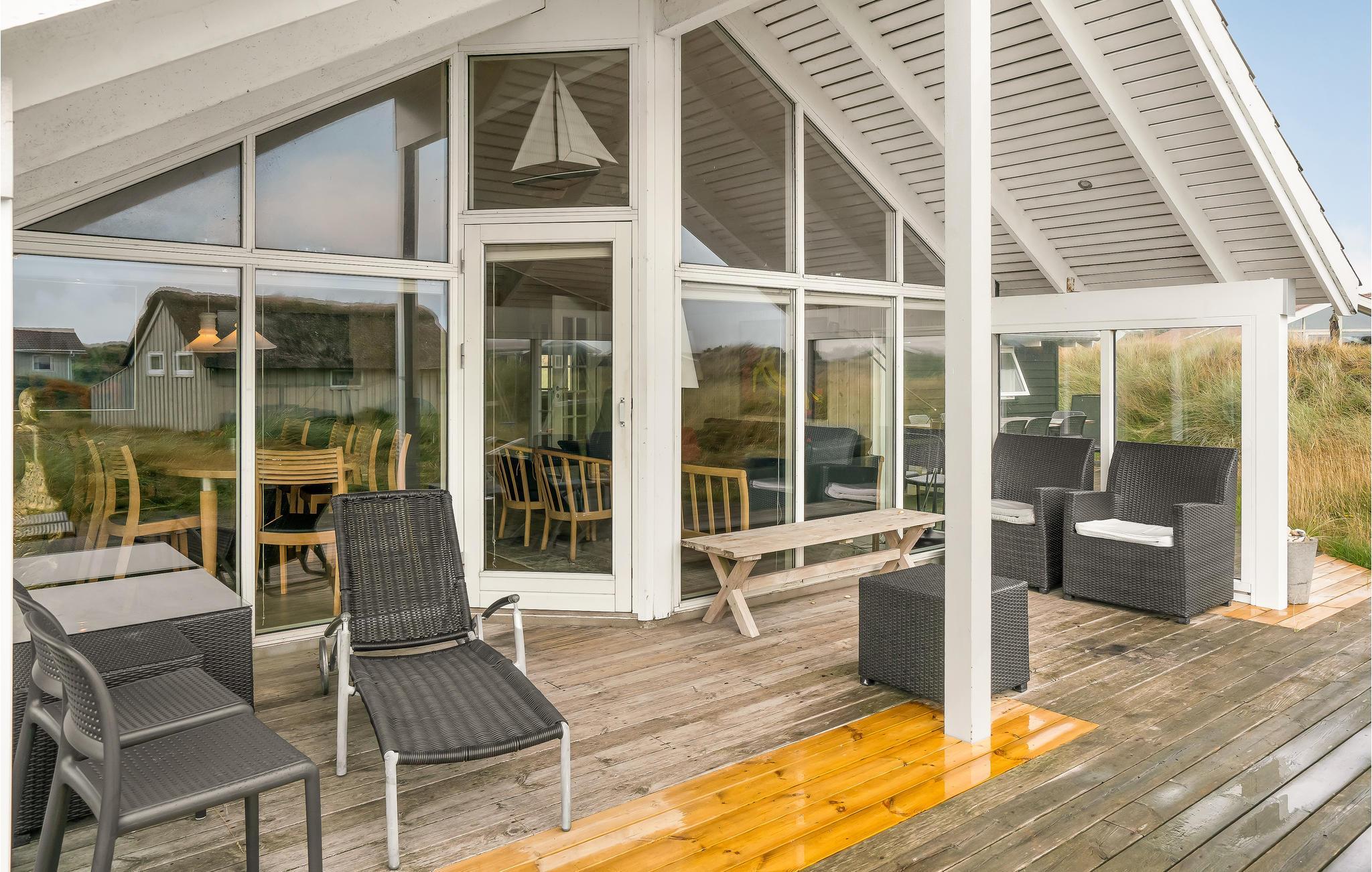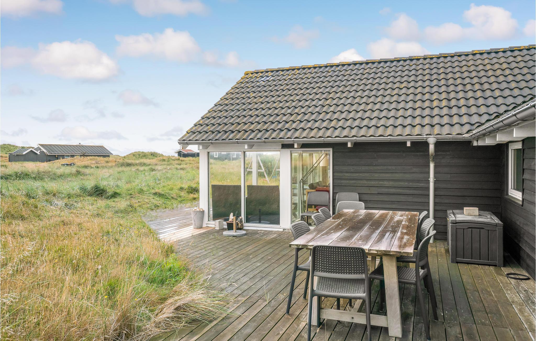 Udendørs kan I nyde de lange sommeraftener på den dejlige terrasse ligesom der er en dejlig udsigt over klitterne fra huset.