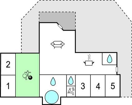 Badeværelse 5m2 (nr. 1) - WC. Varmt og koldt vand. Bruser