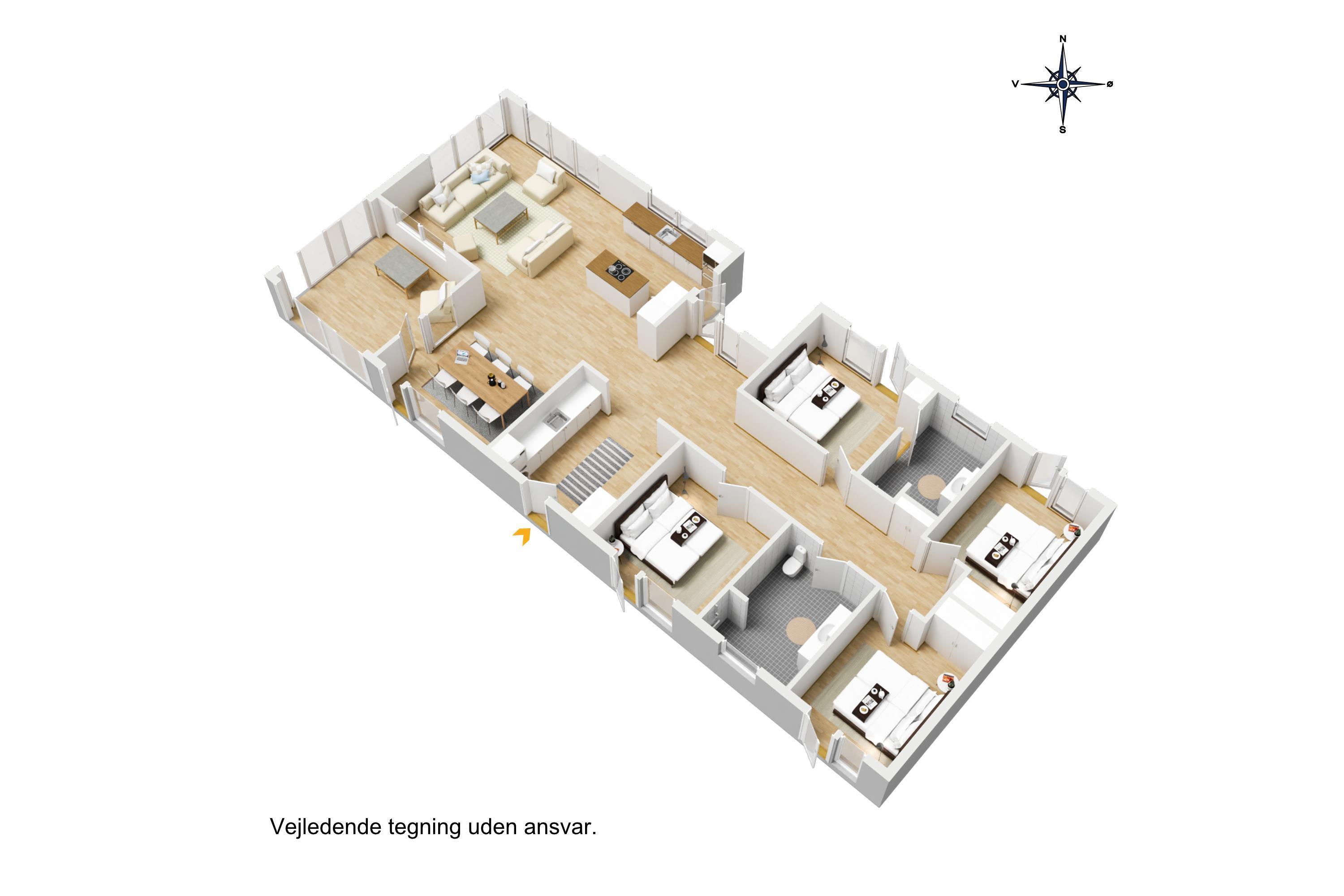 Med 4 store soveværelser har feriehuset plads til op til 8 personer og er dermed ideelt til en familieferie eller en ferie med venner. De 2 stilfulde badeværelser giver den ekstra komfort, man sætter pris på i ferien. For at du kan starte hver dag afslappet, er der vaskemaskine og tørretumbler til rådighed. Nyd komforten ved gulvvarme, der er i hele huset og holder dig dejlig varm, selv på kølige dage.
