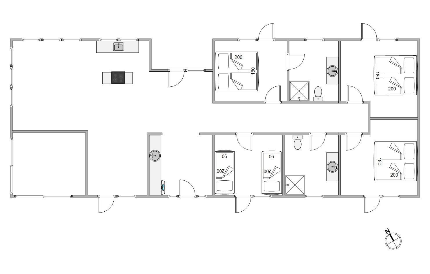 Køkkenet på Bjerges Leje 31 er veludstyret og har alle de nødvendige faciliteter, såsom induktionskomfur, opvaskemaskine og en separat 60 liters fryser. Med andre ord alt, hvad I behøver for at forkæle hinanden med lækre hjemmelavede retter. Det praktiske køkken og køkken-ø er åbent i forbindelse med spisestuen og stuen, så I kan tilbringe mange hyggelige timer sammen der.