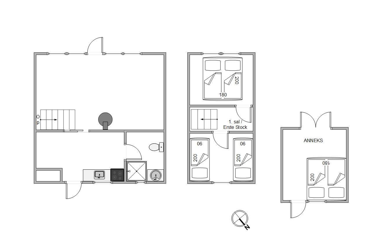 Det stråtækte sommerhus fordeler sig over 2 plan og er ideelt til en lille familie eller 2 par, der ønsker en base med både atmosfære og komfort. På første sal finder I 2 hyggelige soveværelser, mens stueplan rummer et fint badeværelse og et opholdsrum med køkken og spiseplads i åben forbindelse. Det tredje soveværelse ligger i det velindrettede anneks – en oplagt løsning, hvis I har teenagere med, eller hvis nogen har brug for lidt ekstra ro og privatliv.