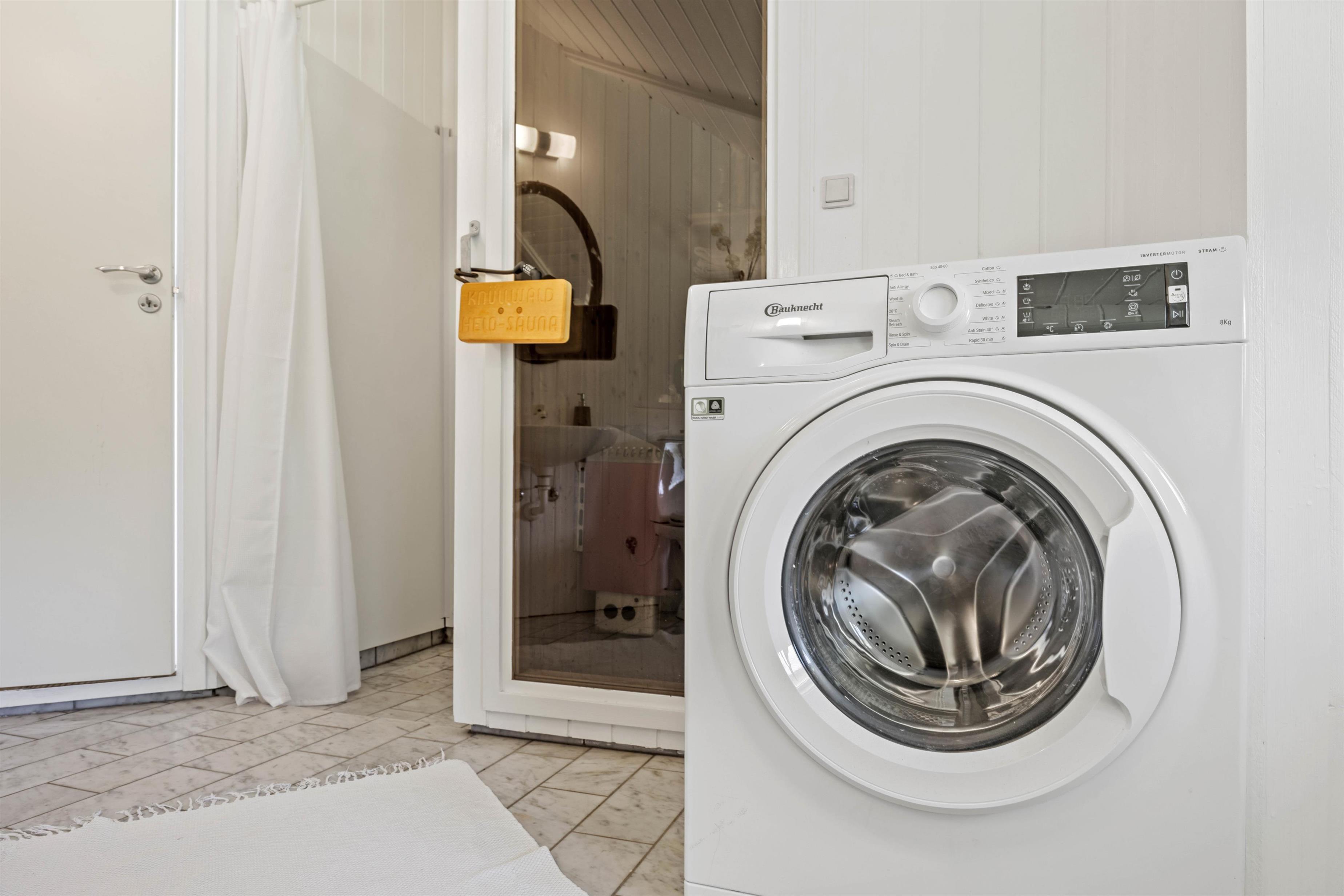 Sommerhuset er udstyret med moderne faciliteter, der gør det let at slappe af og nyde opholdet. En vaskemaskine står klar til praktisk brug i hverdagen, og på badeværelset sørger gulvvarme for ekstra komfort. En luft-til-luft-varmepumpe sikrer et behageligt indeklima året rundt. Når aftenen falder på, kan I tænde op i brændeovnen og læne jer tilbage med en god film via Chromecast – en skøn afslutning på en dag fyldt med oplevelser.