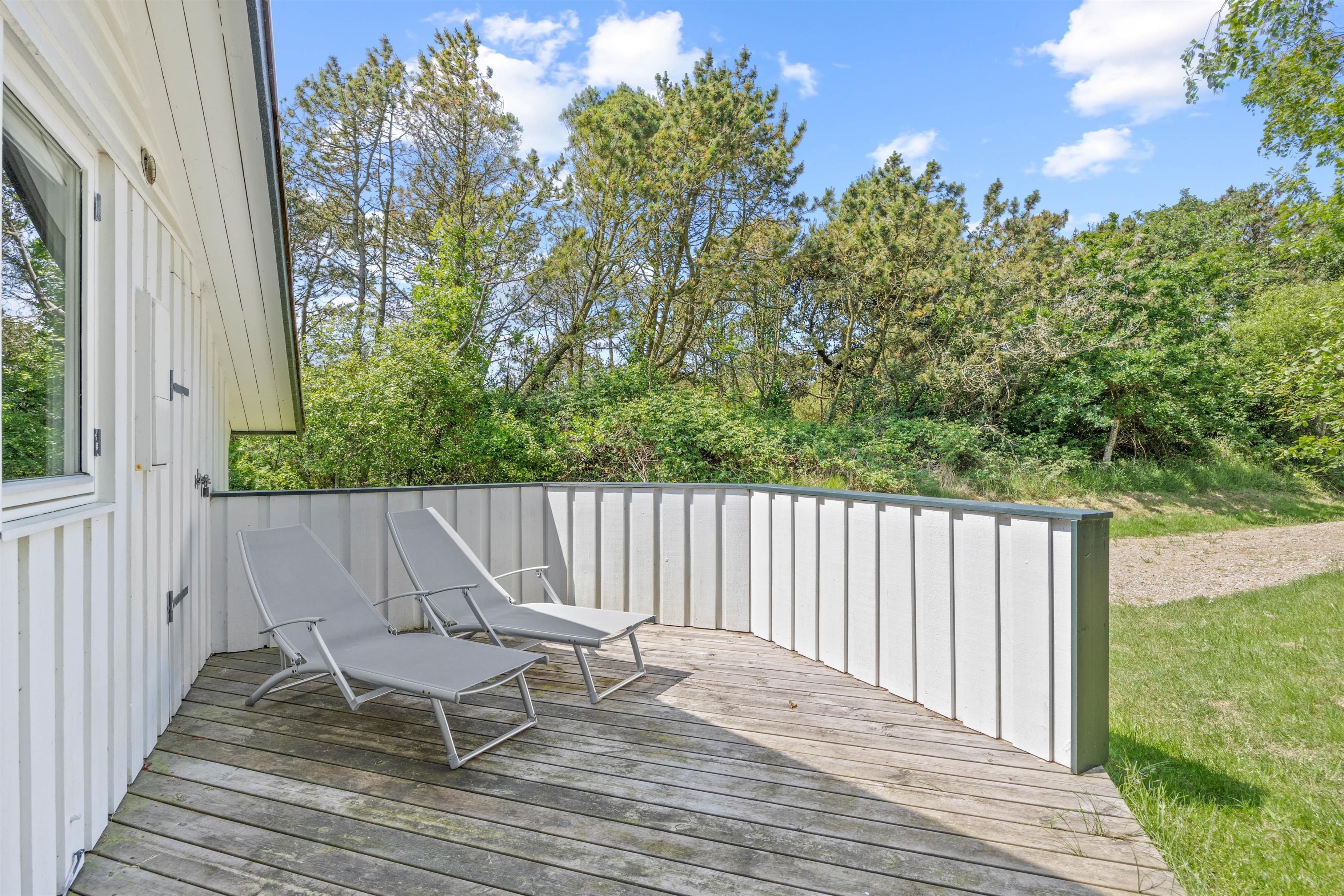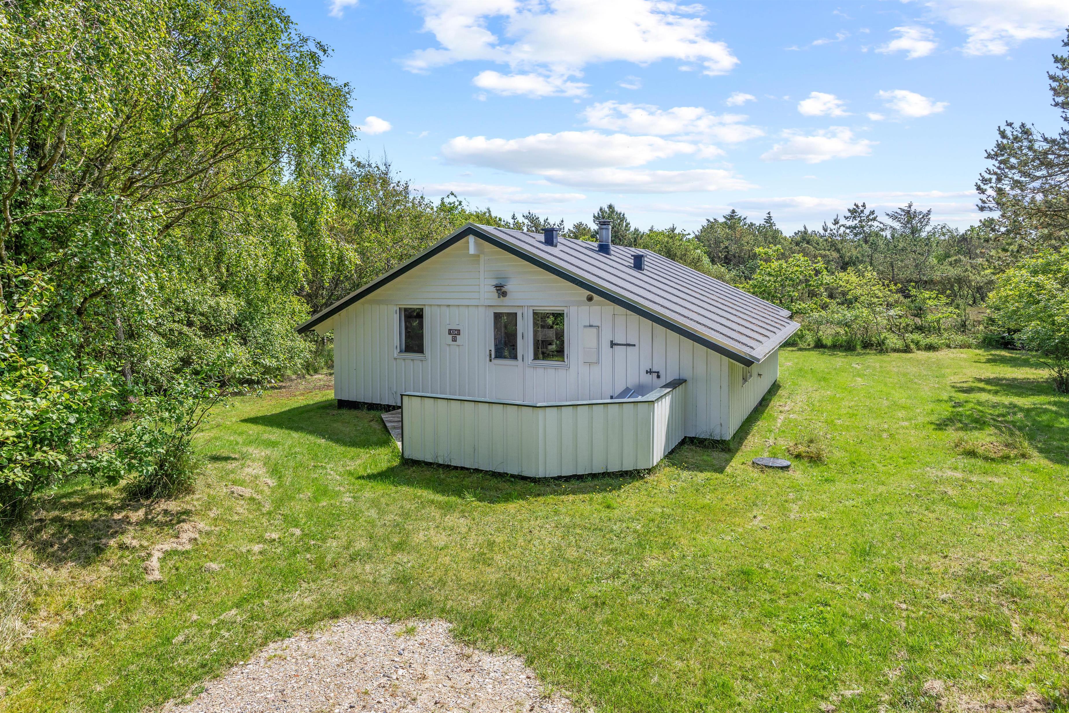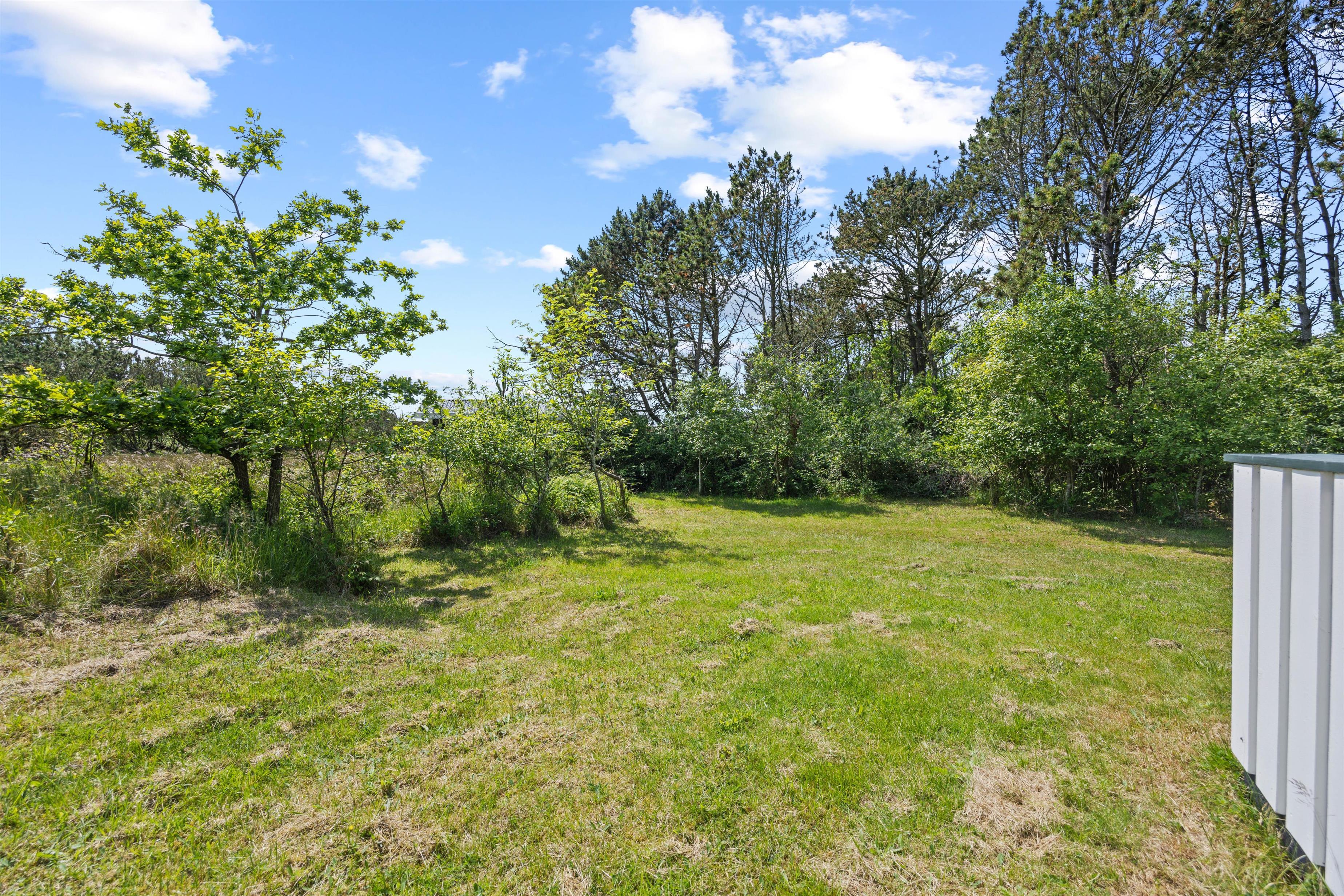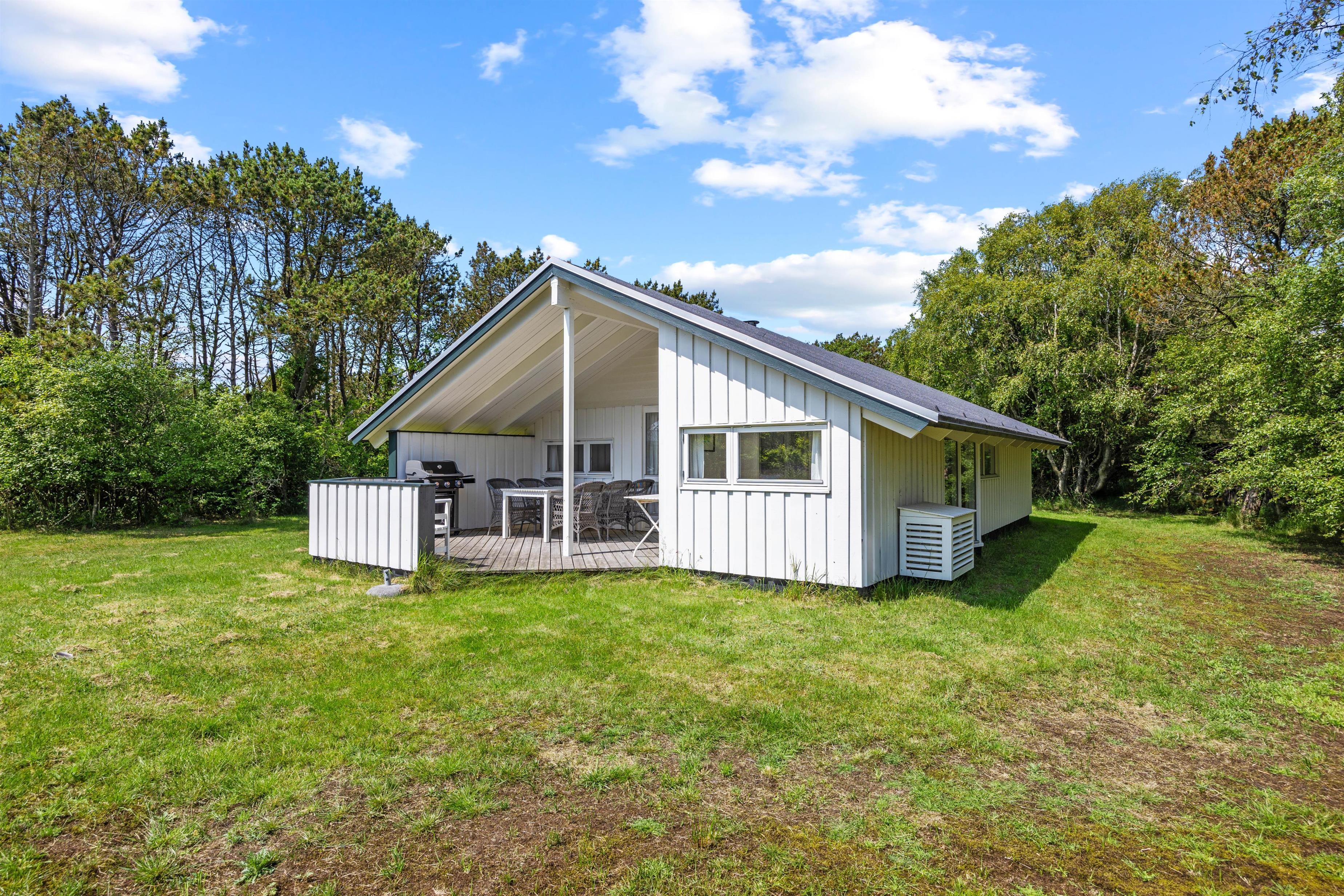 Sommerhuset ligger på en stor naturgrund på 2.343 m² og byder på skønne rammer til afslapning i det fri. På den overdækkede terrasse kan I slå jer ned i havemøblerne og nyde det vestjyske klima – uanset om det er med morgenkaffen, aftensmad fra grillen eller en stille stund i godt selskab. Her er der plads til at være sammen, trække sig tilbage og lade feriedagene finde deres eget rolige tempo.