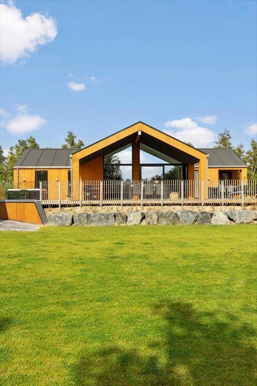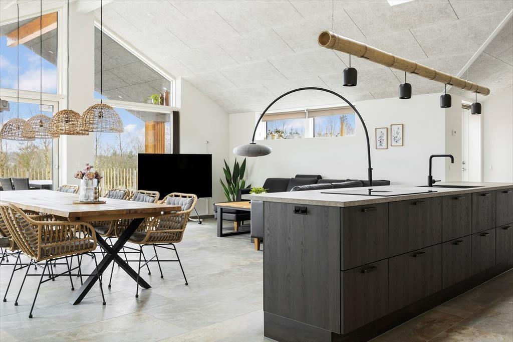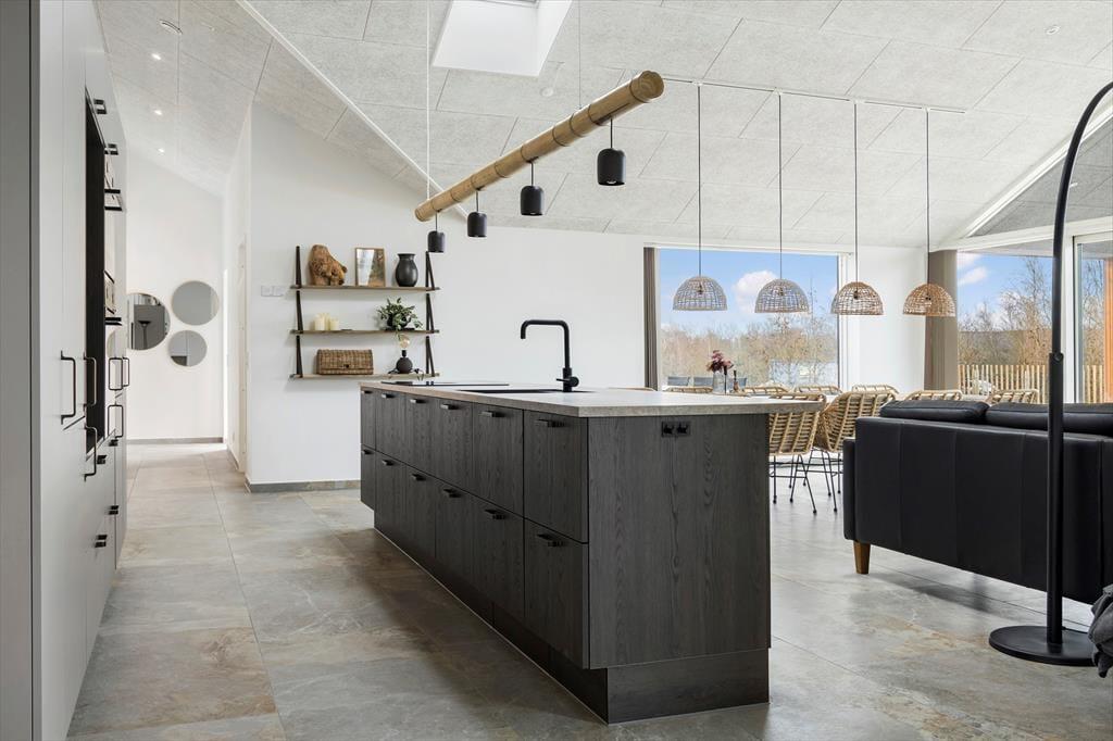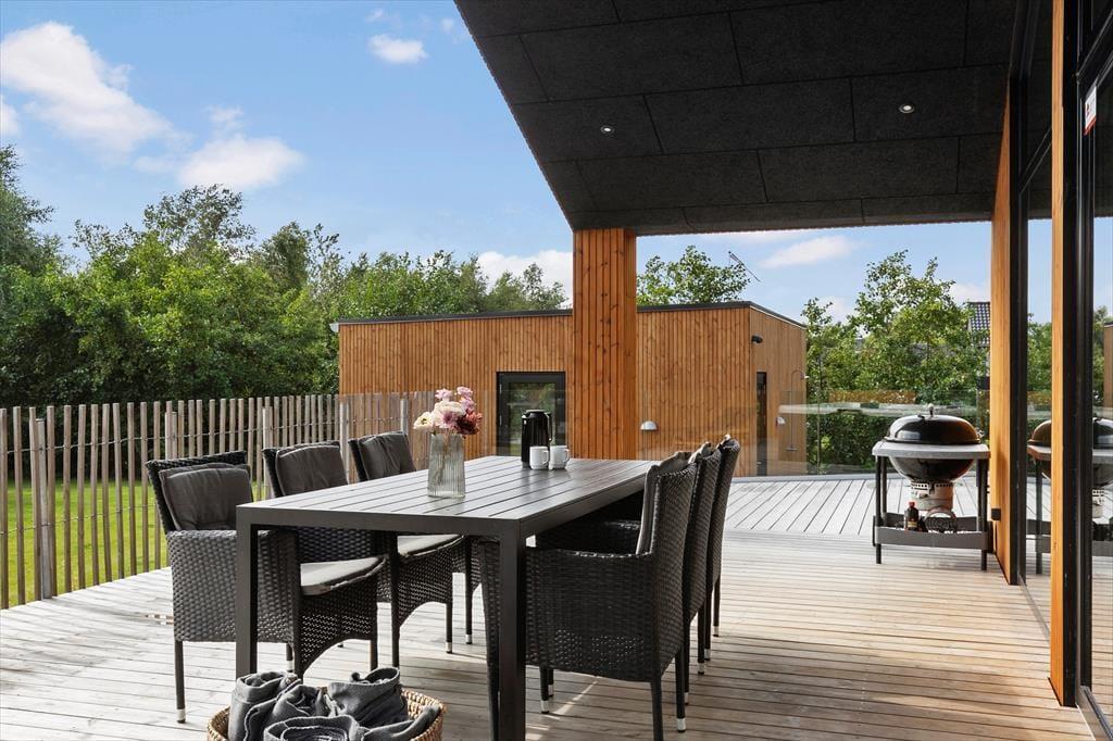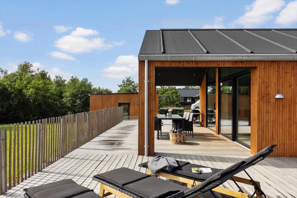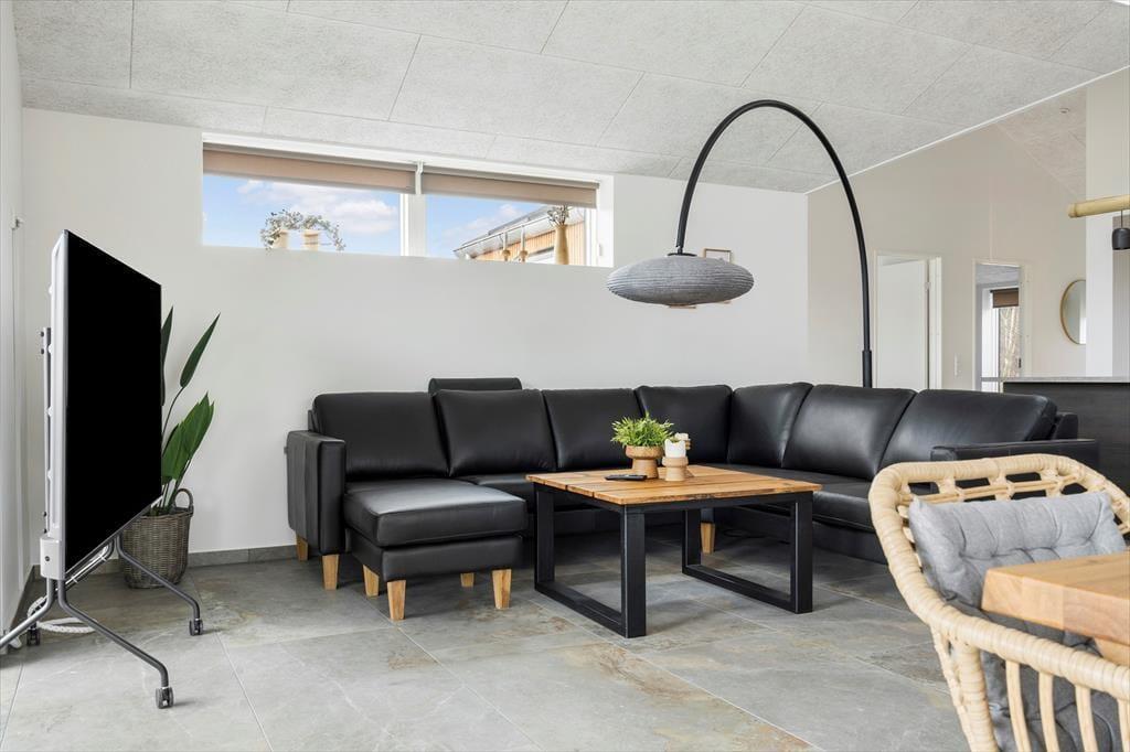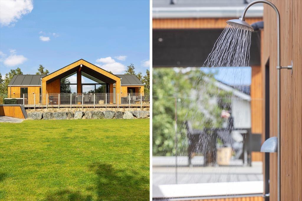 Det moderne sommerhus er bygget med fokus på kvalitet og komfort, hvor hver detalje er gennemtænkt for at sikre en behagelig oplevelse. De store vinduer lukker masser af naturligt lys ind og giver et smukt udsyn til de omkringliggende naturområder. Indenfor finder du et stilrent, åbent køkken, der smelter sammen med den lyse og luftige stue, hvor du kan lade op efter en lang dag fyldt med aktiviteter. Når aftenen falder på, kan du samles i husets skønne stue, nyde hyggen og lade dagens bekymringer glide væk. De indbydende soveværelser skaber en rolig atmosfære, hvor du kan få en god nats søvn og lade op til nye eventyr næste dag.