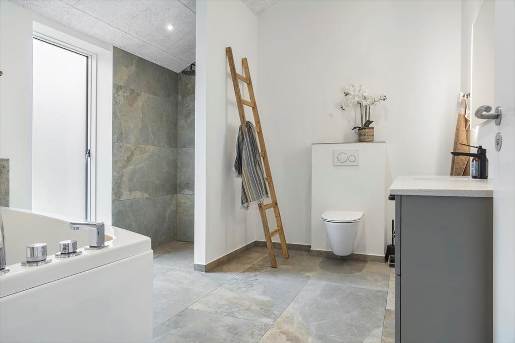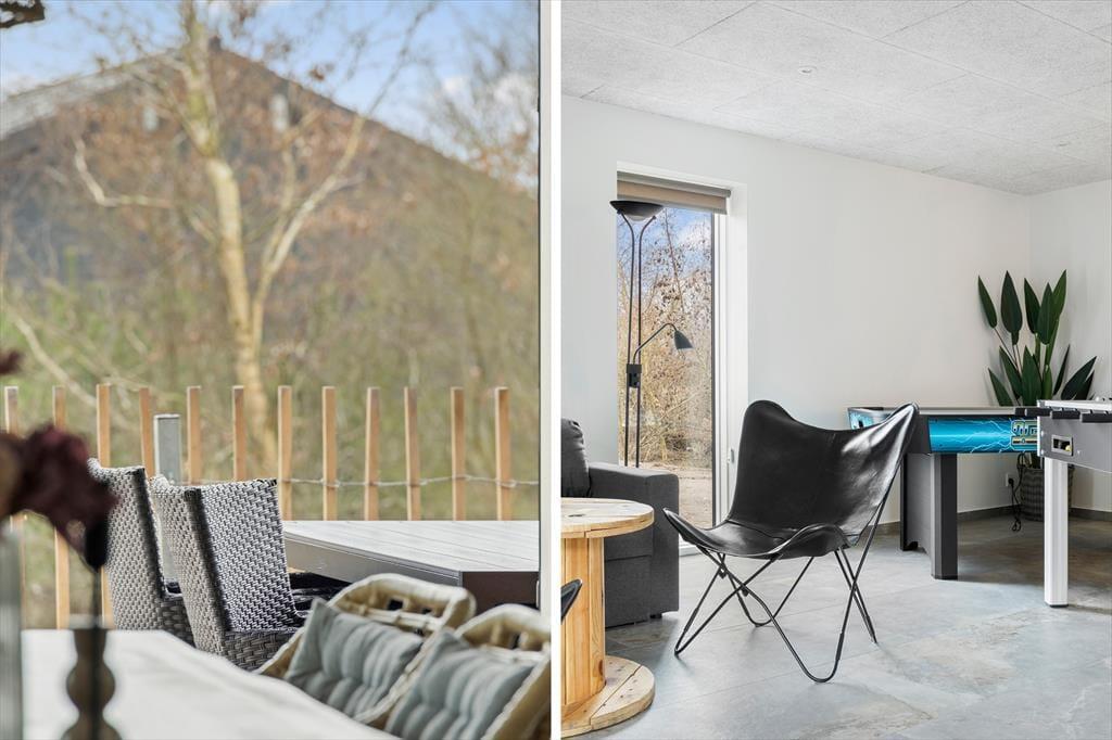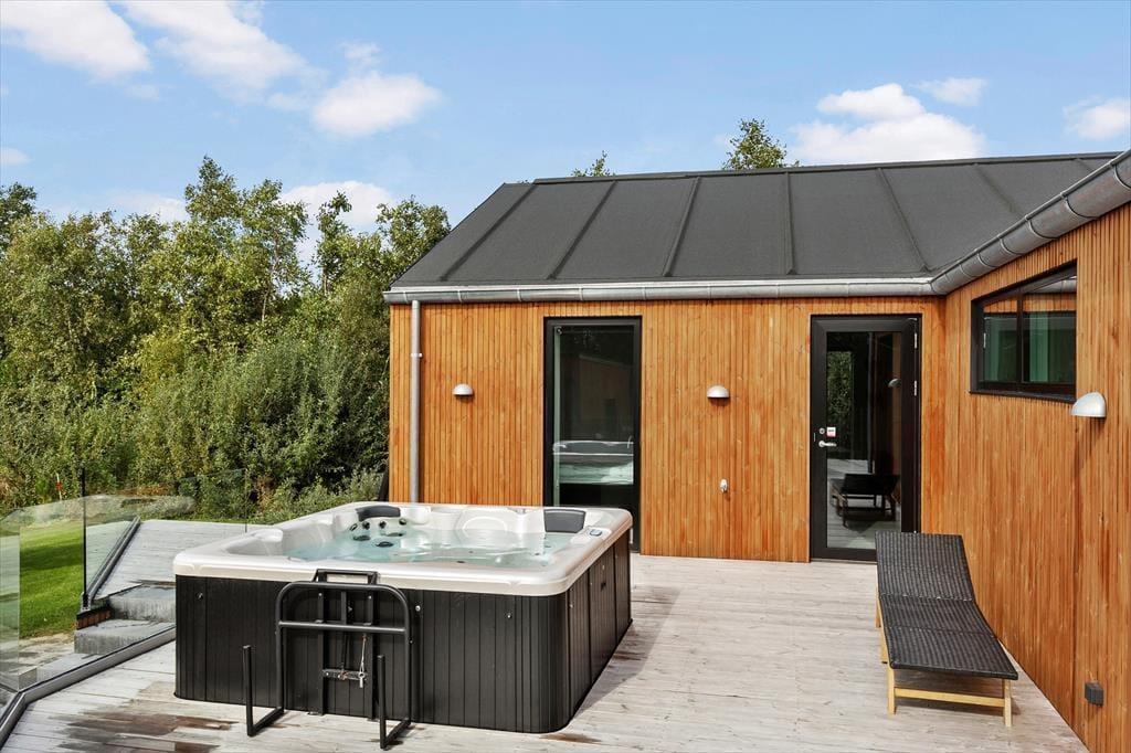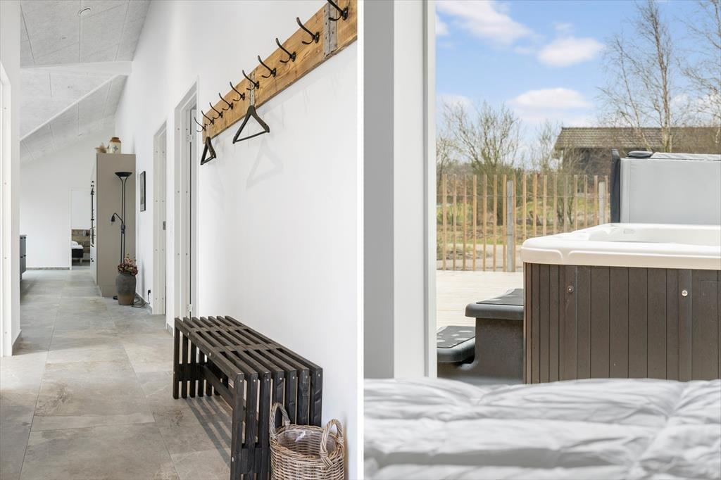 Udendørsarealet indbyder til både afslapning og leg. Den generøse, ugenerede grund tilbyder både åbne plæner til leg og terrasser, hvor du kan slappe af med en god bog, mens du lytter til fuglesangen og mærker vinden i træerne. Her er der plads til hele familien, og hvis du har børn med, vil de elske at løbe rundt på græsset og lege. Nyd de lange sommeraftener på terrassen, hvor du kan tænde op i grillen og nyde lækre måltider under den klare aftenhimmel. For en ekstra forkælelse kan du nyde udespaet, som giver mulighed for skønne afslapningsstunder under åben himmel. Med den fantastiske beliggenhed er det ikke langt til Sønderstrand, hvor du kan nyde livet ved havet, bygge sandslotte eller blot gå lange ture langs vandet. Udenfor finder du også en udebruser, der giver dig mulighed for at skylle sand og salt af efter en dag ved stranden.