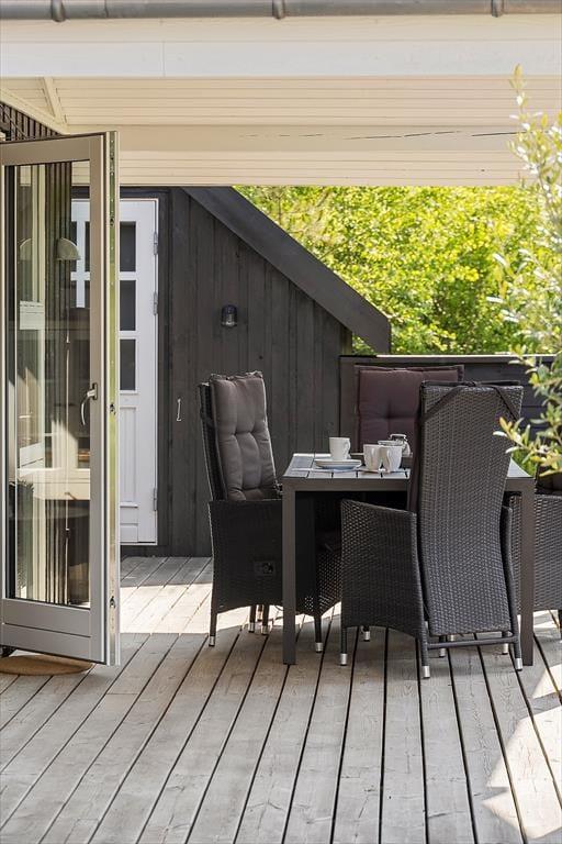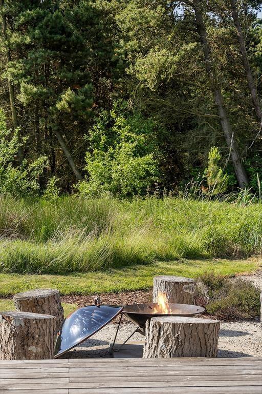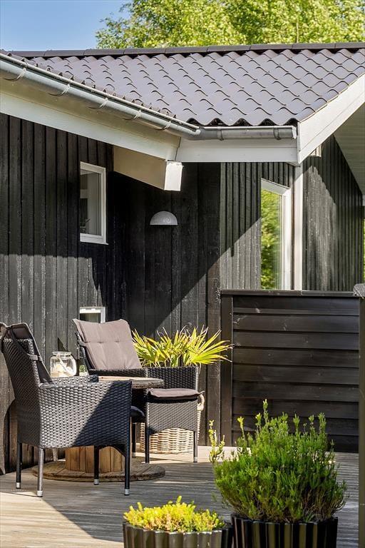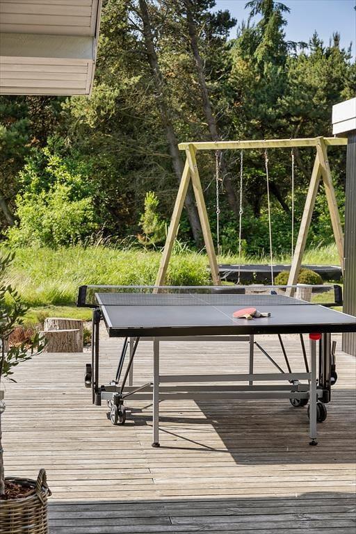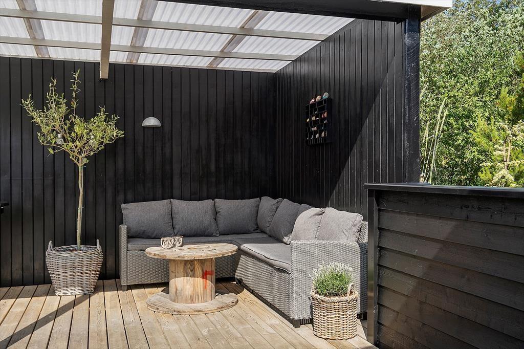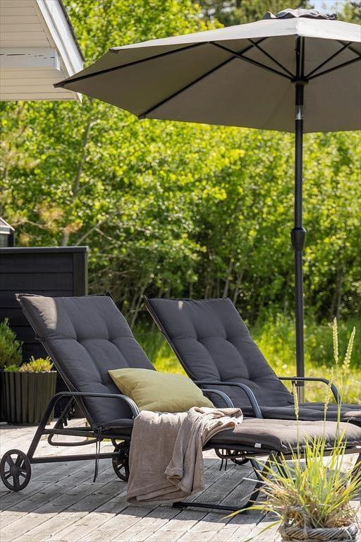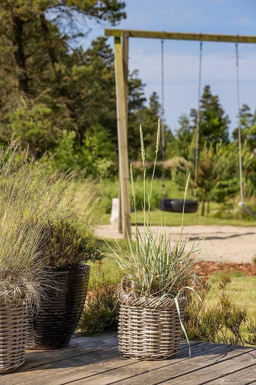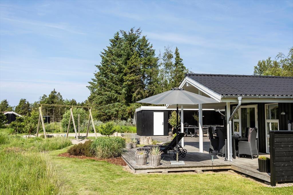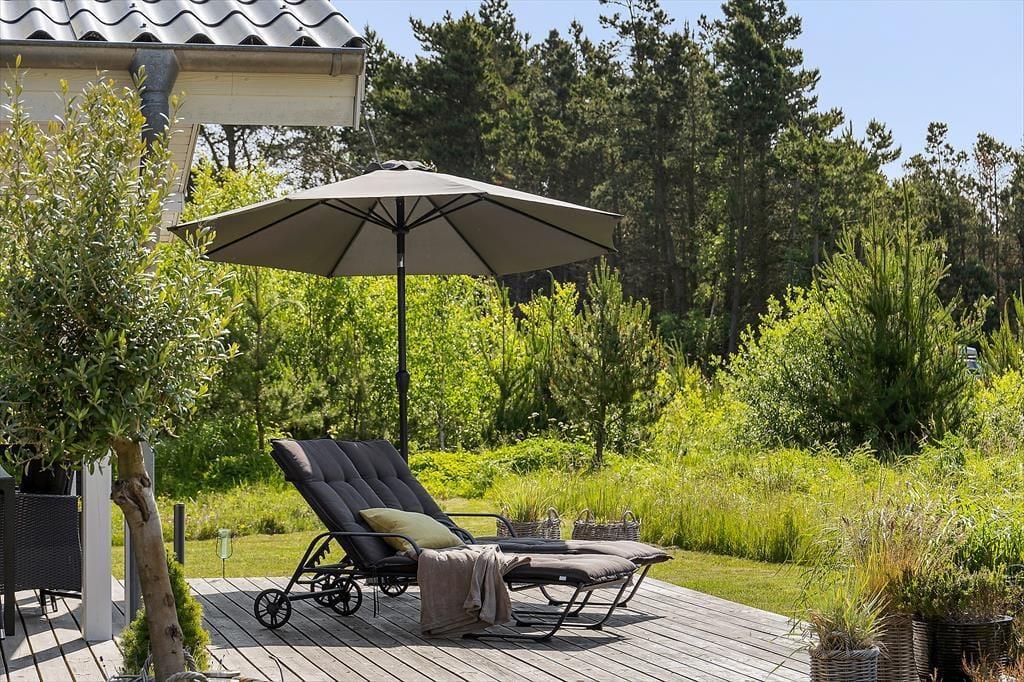 Den 2500 m² store naturgrund er et eldorado for både børn og voksne. I smukke, grønne omgivelser kan I spille beachvolley, hoppe på trampolin og gynge, og der er også mulighed for at spille bordtennis og dart under halvtaget. I solskinsvejr er det herligt at slænge sig på den store træterrasse – eventuelt under parasollen eller på den overdækkede del af terrassen, hvis du trænger til skygge. Om aftenen er der rig mulighed for at grille eller at samles ved bålpladsen, mens I nyder det afslappende ferieliv.