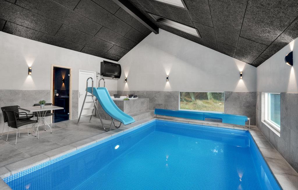 Luksussommerhus i 1. række til Sønderstrand med pool, sauna og aktivitetsrum for hele familien.