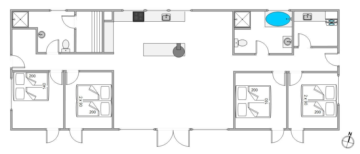 Dette charmende sommerhus er bygget i 2003 og er på 142 m2. På sommerhusets 142 m2 er der plads til 8 personer. De 8 sovepladser er fordelt på 4 soverum med 2 dobbelt- og 4 enkelsenge. Derudover er der 2 store badeværelser med gulvvarme. På det ene badeværelse finder du et spabad, hvor du kan slappe af og nyde ferien. Der er også mulighed for at nyde varmen i saunaen, som du finder på det andet badeværelse.