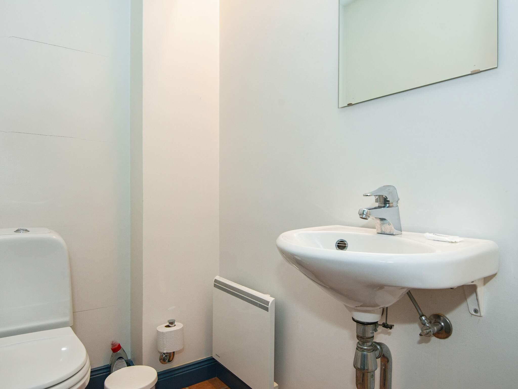 Hyggelig spiseplads og stue med brændeovn. Pænt badeværelse med gulvvarme, bruseniche, 2-personers spabad, vaskemaskine og tørretumbler samt direkte adgang til sauna. Separat værelse med toilet og håndvask. Kabel-tv og gratis 100/100 Mb fiberinternet med Wi-Fi.