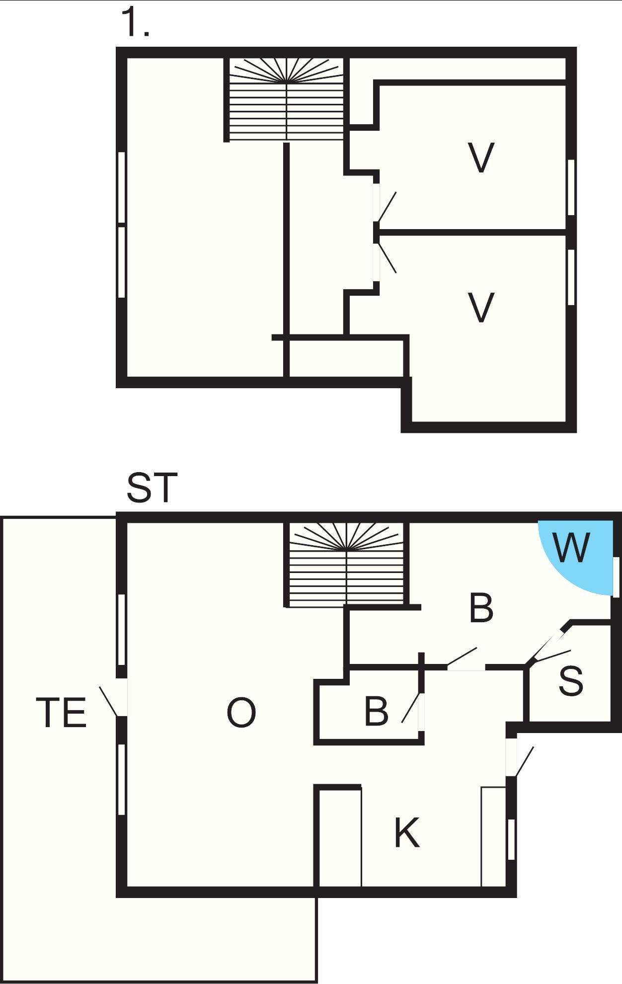 Hver klitgård består af 4 lejligheder med egen indgang. Stueetagen har åbent køkken, spiseplads og stue. Køkkenet har varmluftsovn og opvaskemaskine.