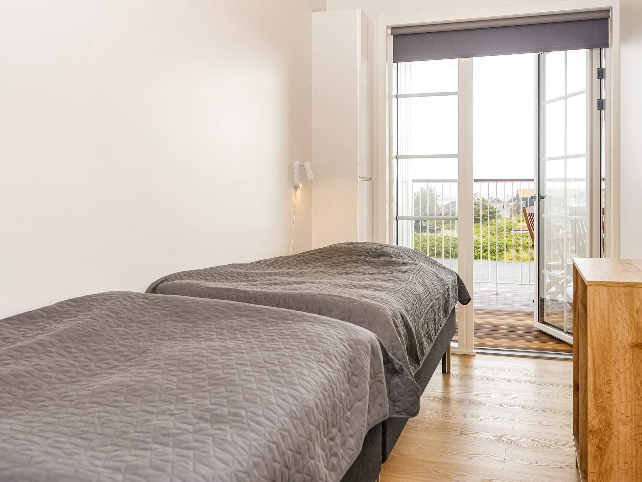 Klitten Feriecenter i Søndervig Ferielejlighed beliggende i badehotellet Klitten midt i Søndervig med mindre end 100 meter til Vesterhavet og den hvide sandstrand. Badehotellet blev genopbygget i 2024. Lejligheden ligger i den hvide hovedbygning på Klitten og er moderne og smagfuldt møbleret i to plan. Øverst ved indgangen, er der to soveværelser og et stort badeværelse med vaskemaskine, tørretumbler og spabad. Fra begge værelser er der udgang til en balkon mod øst. Ned ad trapperne er der køkken og stue med udgang til terrassen mod vest samt et toilet. I Søndervig er der smukke naturoplevelser lige udenfor døren: Gåture langs den hvide sandstrand og badeture i Vesterhavet. Søndervig er en charmerende badeby med alle moderne faciliteter. Der er liv og puls og samtidigt rig mulighed for ro og afslapning. Nyd den centrale beliggenhed og lad bilen stå. Velassorteret supermarked, bager, cafeer, restauranter, shopping muligheder, bowling, minigolf og badeland i gåafstand. Tag cyklerne med eller lej en og nyd den smukke natur på vandre- og cykelstien imellem Søndervig og Hvide Sande. 18-hullers golfbane og fiskesøer 5 minutters kørsel fra Søndervig. Den smukke fiskerby Hvide Sande og købstaden Ringkøbing med de toppede brosten, ligger under et kvarters kørsel væk. Begge byer med gode indkøbsmuligheder, fiskerestauranter- og shopping muligheder i specialbutikker. På Ringkøbing Fjord har I mulighed for at afprøve vandsport som surfing, kabelbane og stand-up padle. Besøg også Lyngvig Fyr, Fiskeriets Hus, Abelines Gård, Ringkøbing Museum, Naturkraft, WOW aktivitetspark og Stauning Whisky. Gratis adgang til Danland Søndervig Badeland. Lejligheden opvarmes med gulvvarme fra vand/luft varmepumpe. Til Klitten hører også privat parkeringsområde med bom.