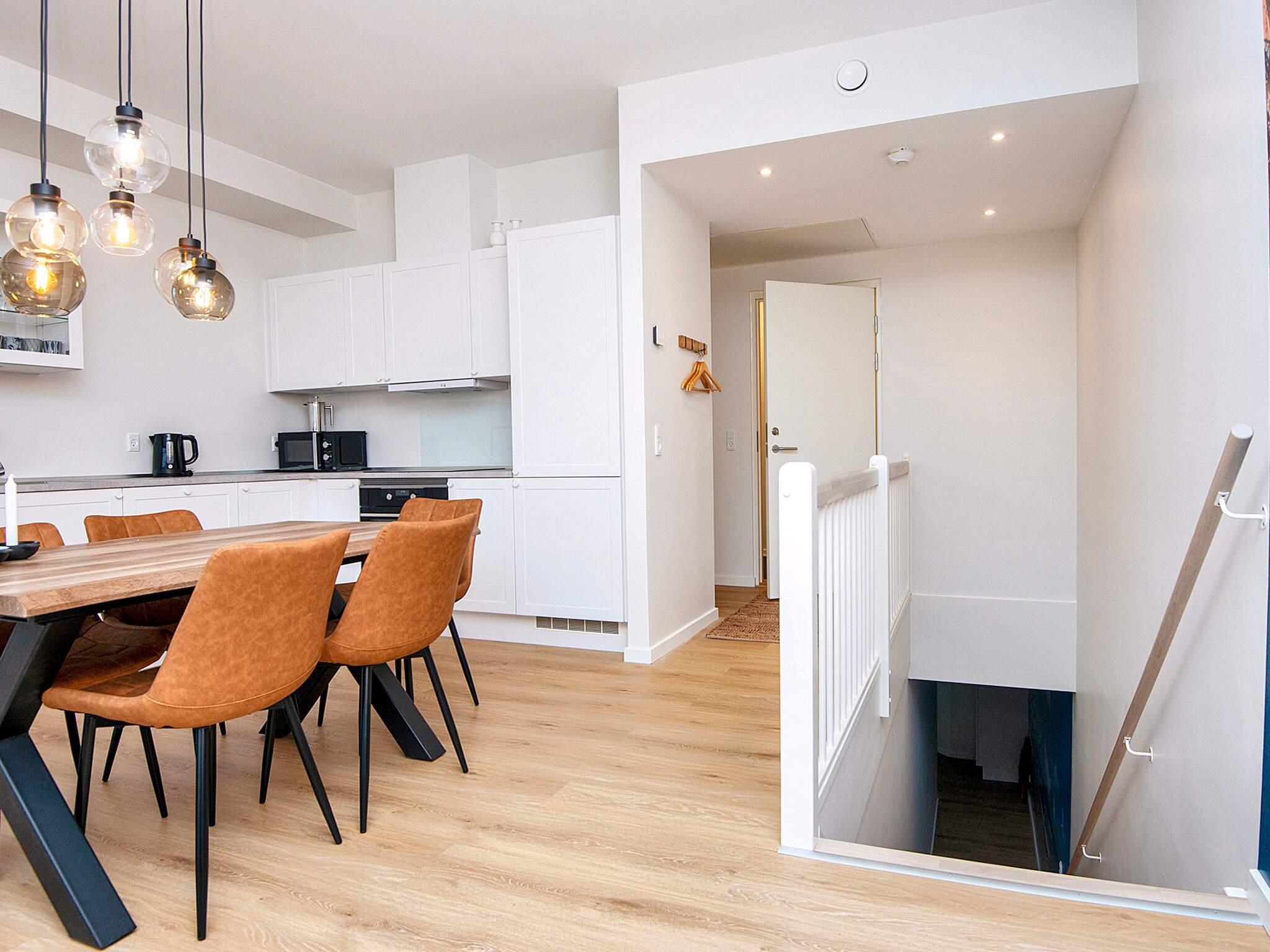Lejligheden ligger i den hvide hovedbygning på Klitten og er moderne og smagfuldt indrettet. Lejligheden er i to plan. I stueplan er der to værelser med udgang til den østvendte terrasse fra begge soveværelser, hvor I kan nyde morgensolen. Der er også et lille ekstra værelse med en 100 cm bred sovesofa. På badeværelset kan du nyde spaen for en voksen eller to børn eller saunaen for tre personer. Der er også vaskemaskine og tørretumbler i ét. På første sal er der et dejligt køkken og stue med sovesofa til 2 og toilet. Herfra er der udgang til vestvendt altan med udsigt til klitlandskabet, hvor man kan nyde smukke solnedgange. Der er internet i lejligheden.