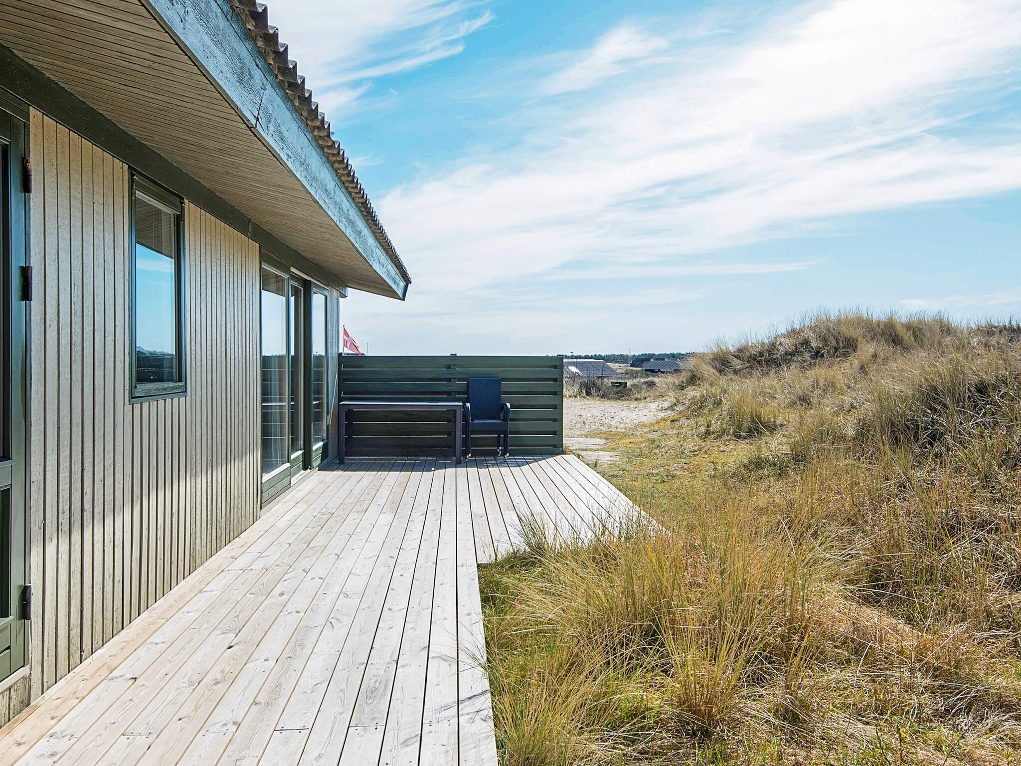 Velfungerende sommerhus beliggende tæt ved Vesterhavet og stranden. Huset ligger på en stor klitgrund i læ af en høj klit, hvorfra der er udsigt over Vesterhavet. Der er ydermere panoramaudsigt over hele området og Ringkøbing Fjord. Et godt familiehus i et skønt naturområde, hvor der fra begge værelser er direkte udgang til terrassen.