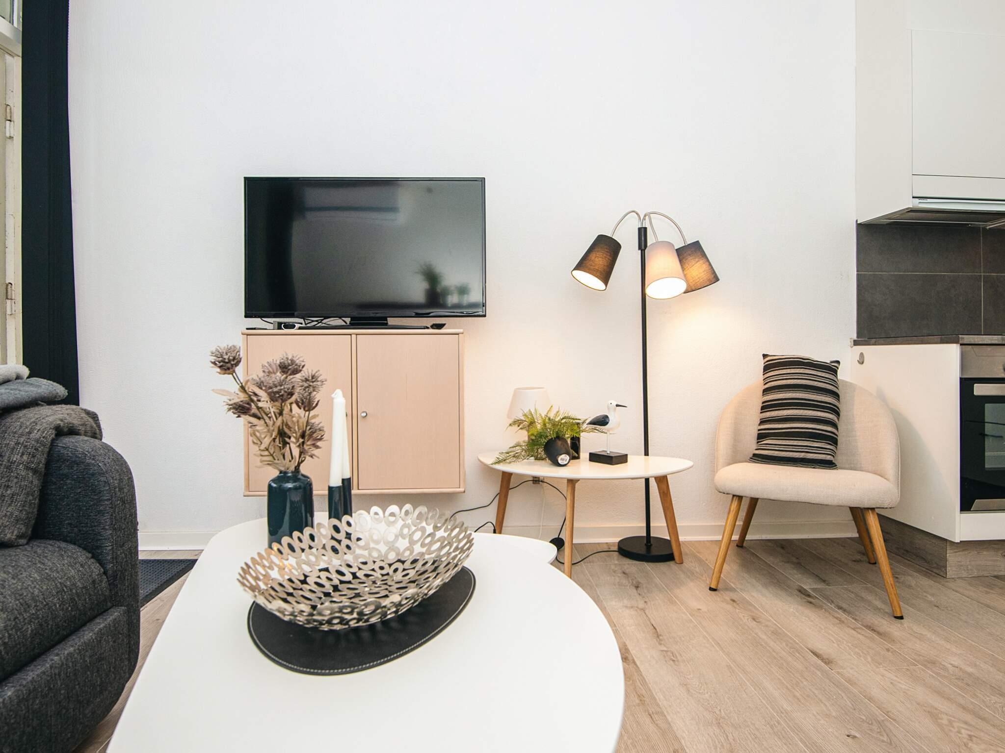 Lejligheden har et hyggeligt opholds- og køkkenområde i åbent plan, hvor I kan lave mad, spise og tilbringe kvalitetstid sammen. Der er to soveværelser: et med dobbeltseng og et med to enkeltsenge, mens en dobbelt sovesofa i opholdsområdet giver ekstra soveplads til yderligere to gæster. En lille hund er velkommen, hvilket gør den særligt velegnet til kæledyrsejere. Interiøret er lyst, komfortabelt og designet til at gøre dit ophold så nemt og behageligt som muligt.
