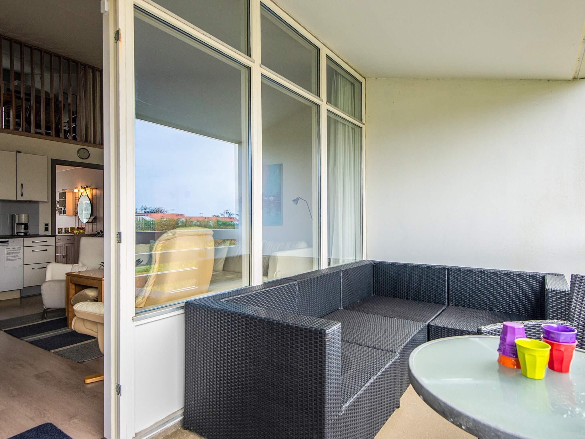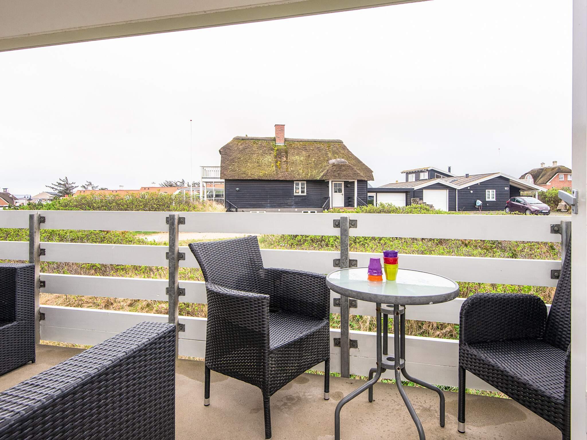 Lejligheden har kombineret stue og køkken med udgang til overdækket altan. Fra balkonen er der udsigt til klitterne og Søndervig by samt Ringkøbing Fjord.