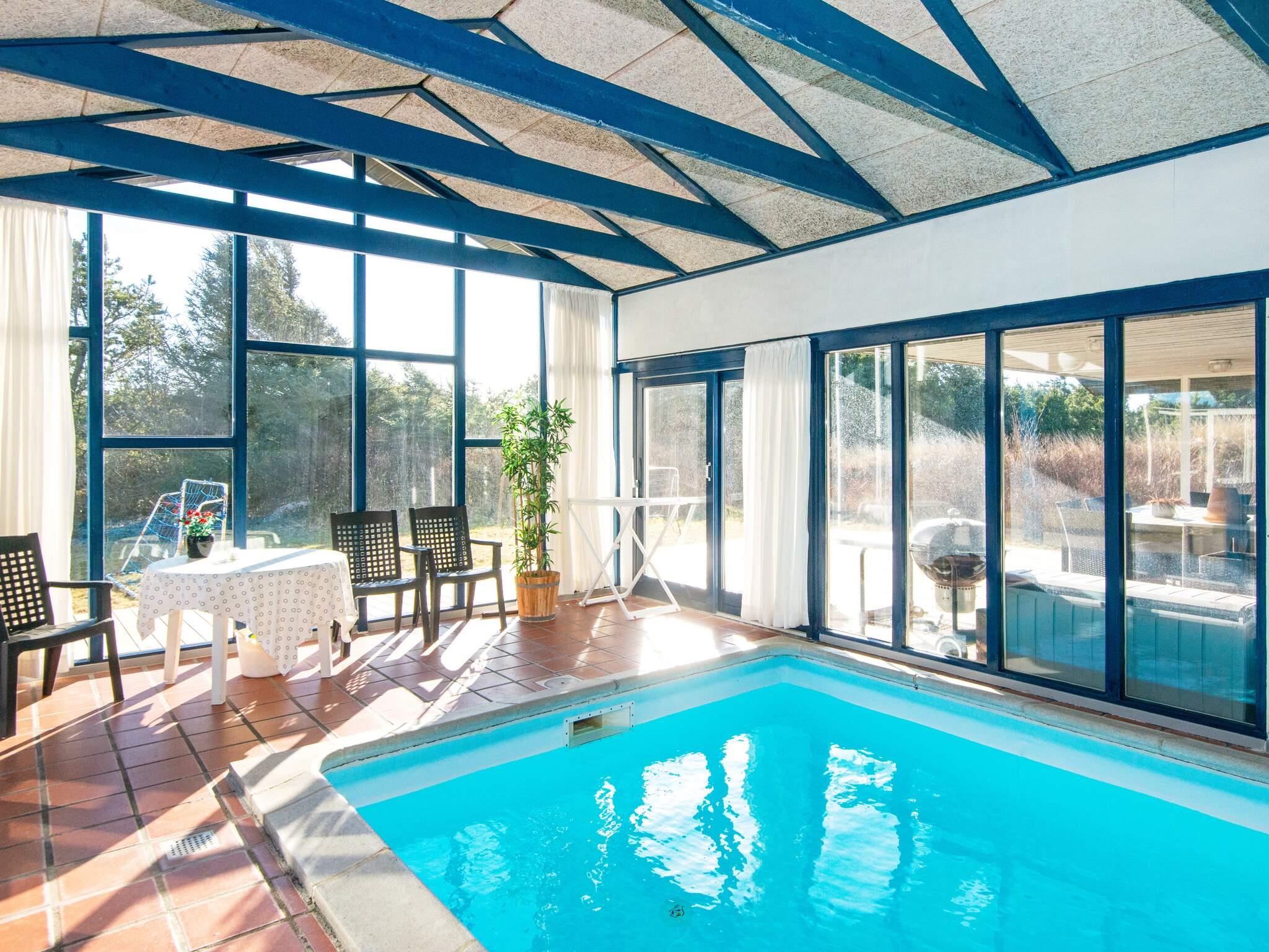 Husets samlingspunkt er den 18 m² store swimmingpool med hejs til kørestolsbrugere. Opvarmning af swimmingpoolen med varmepumpe gør dette hus til et økonomisk hus med lave forbrugsomkostninger for lejeren.
